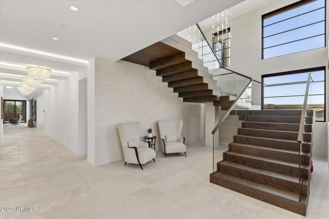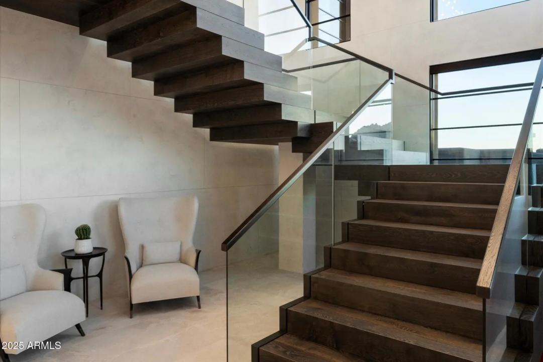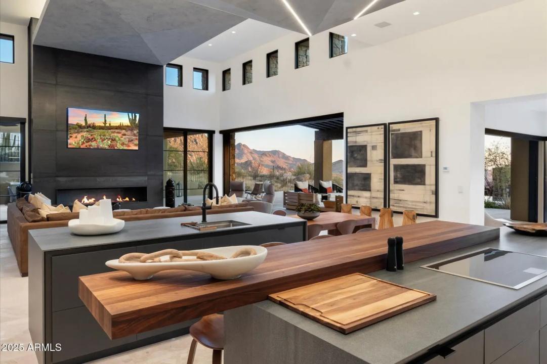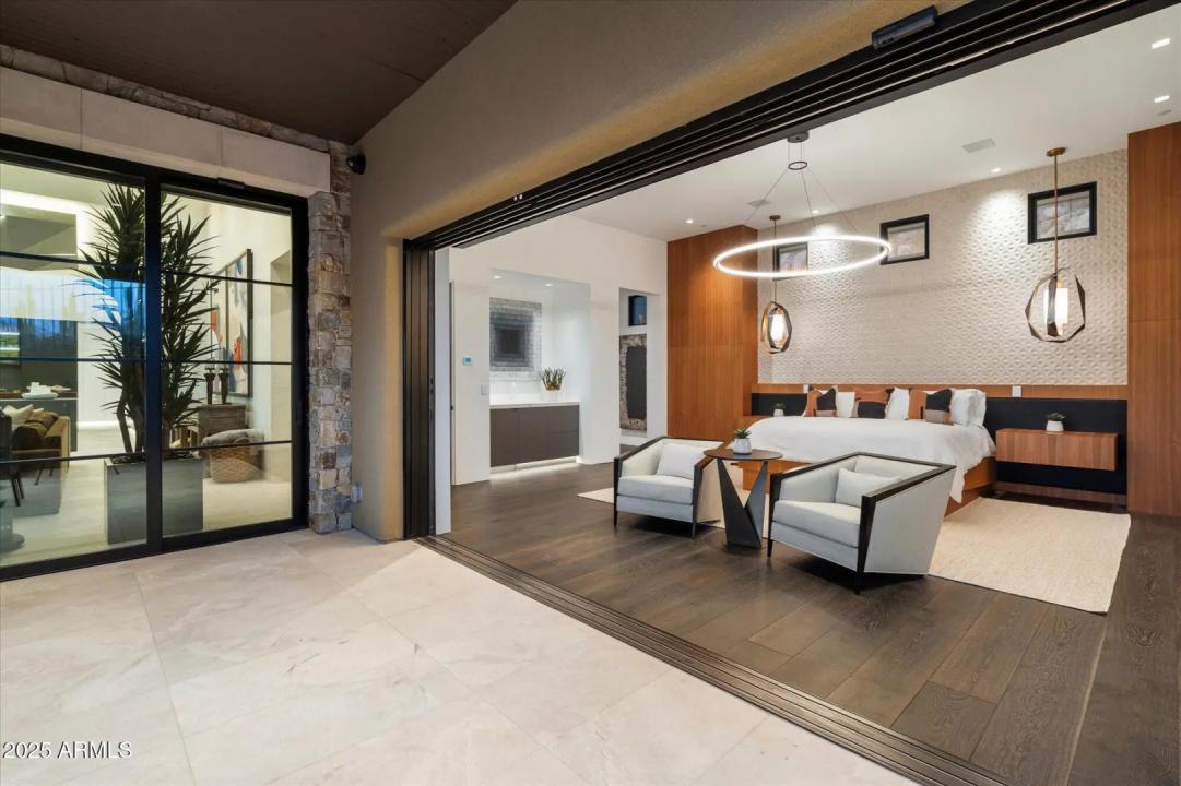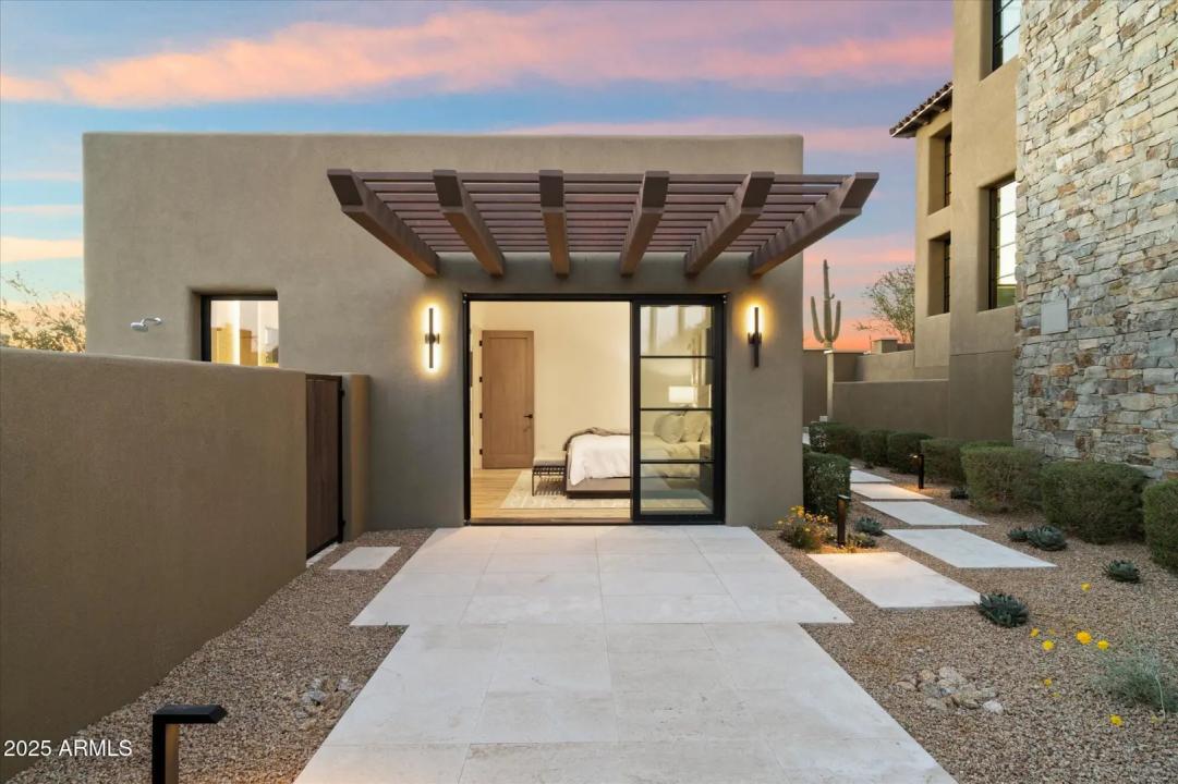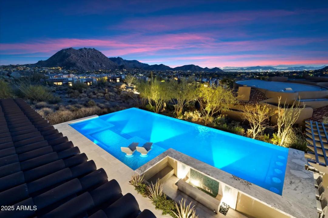 7 min walk to Four Seasons Resort lobby; 1 of 11 custom homesites offering lifestyle amenities to Privada; North Scottsdale gated community on resort grounds, capturing panoramic views of Pinnacle Peak, Troon, McDowell Mountains, city lights, and golf course views. All on one-level living designed by: POETZL architecture, offering a bonus room/office plus a spacious view deck on the second level. European in style with Highest level of construction and building materials; the sliders, fireplaces, Linear cabinetry, Neolith stone countertops, sandblasted marble tiles, wide plank oak flooring, textured walnut millwork, Miele appliances, wine wall, show and prep kitchens are all the very best available. The primary suite and 3 additional ensuite bedrooms each have their own wet bars...