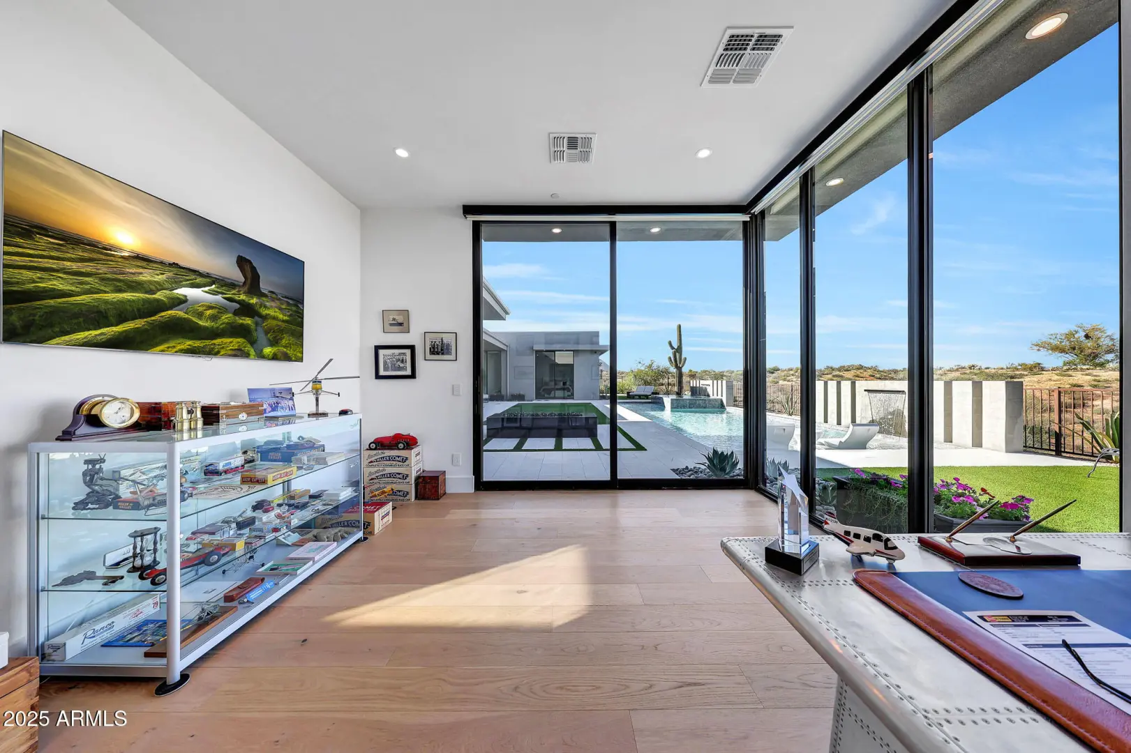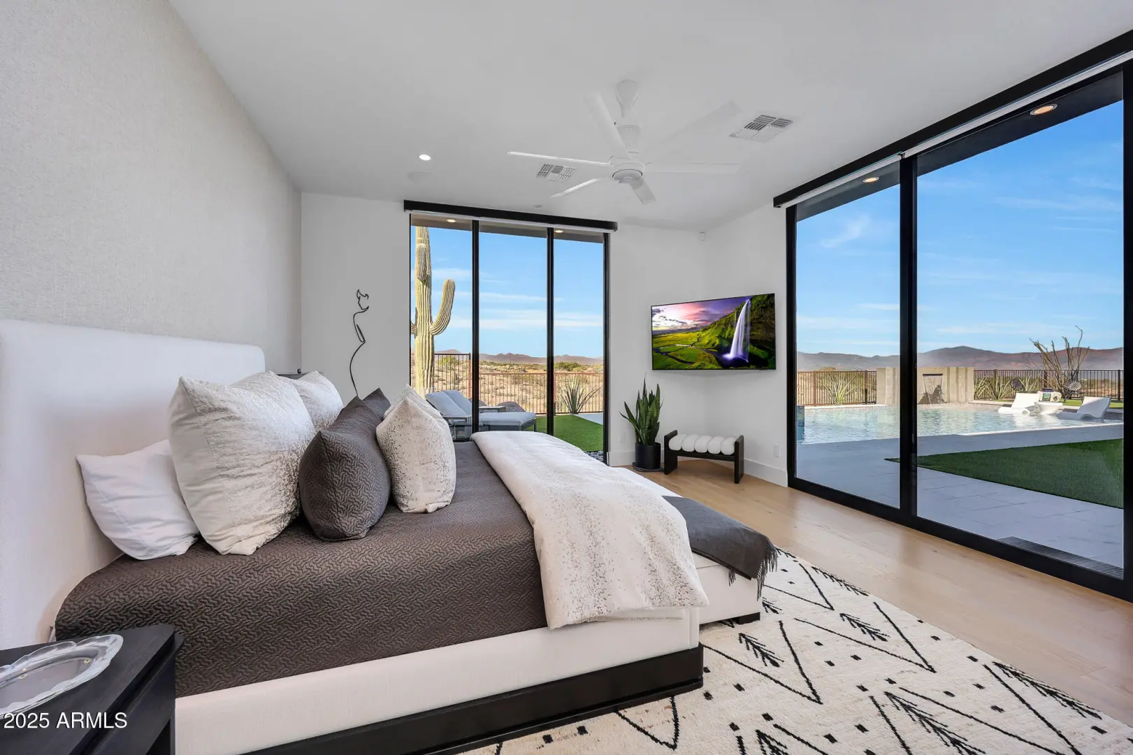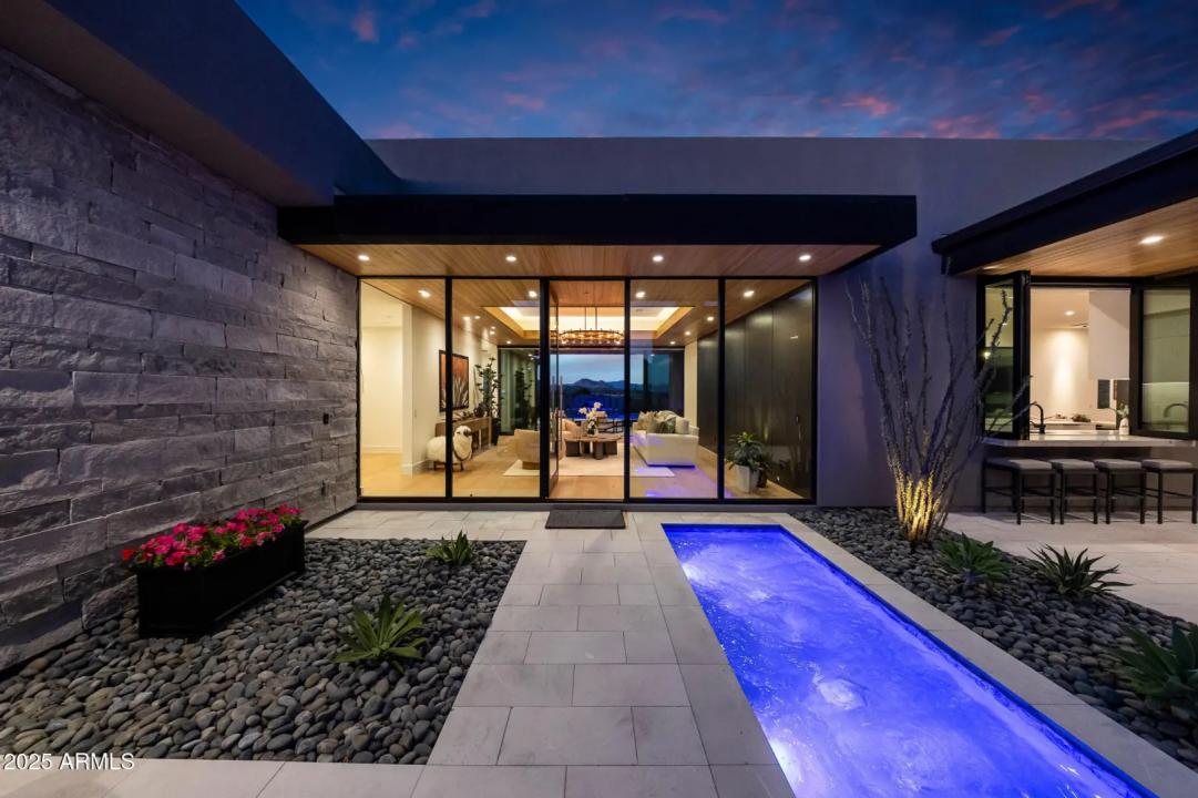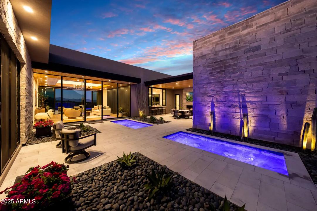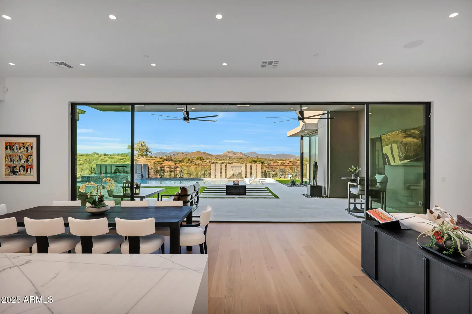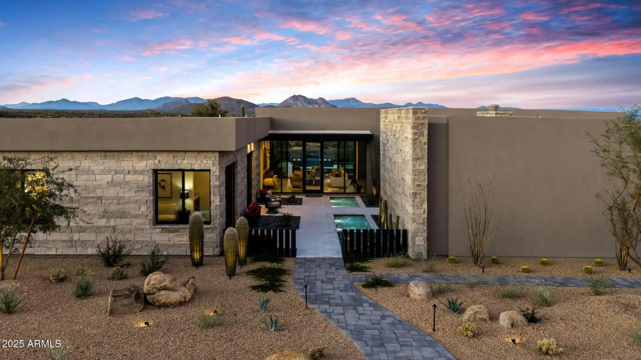 Embrace North Scottsdale living in this newly upgraded Shea Signature residence, set behind the double gates of The Signature at Storyrock. Positioned on the premier lot backing to 30,000+ acres of permanently protected McDowell Sonoran Preserve. Only months old and truly better than new this home offers rare privacy and uninterrupted desert and mountain views. Expansive walls of glass and 10' floor-to-ceiling windows create a refined indoor-outdoor connection, bringing natural light and the surrounding landscape into every space. Designed for luxury and livability, the spacious great room centers around a gourmet kitchen featuring Wolf/Sub-Zero appliances, double wall ovens, professional gas range, large communal island, extensive cabinetry, and an oversized walk-in pantry.