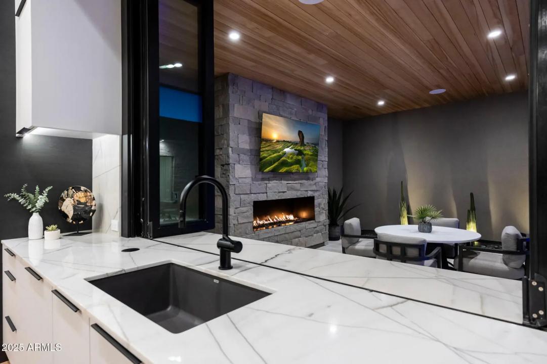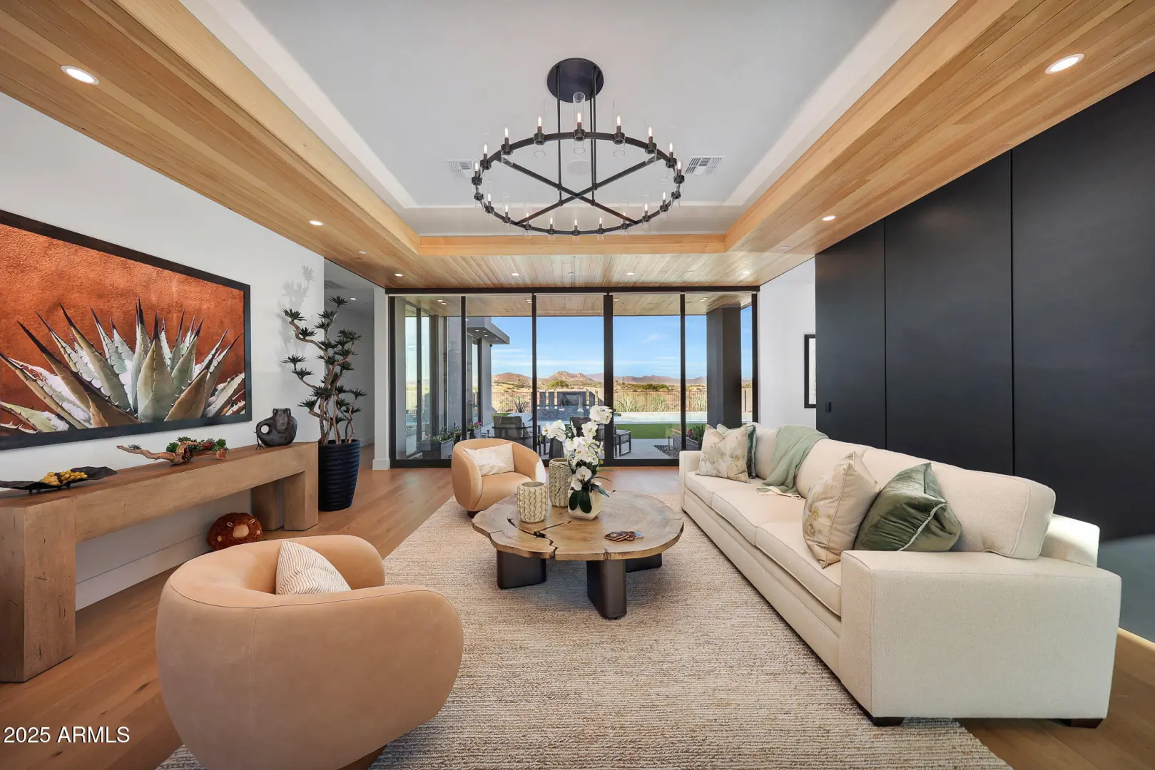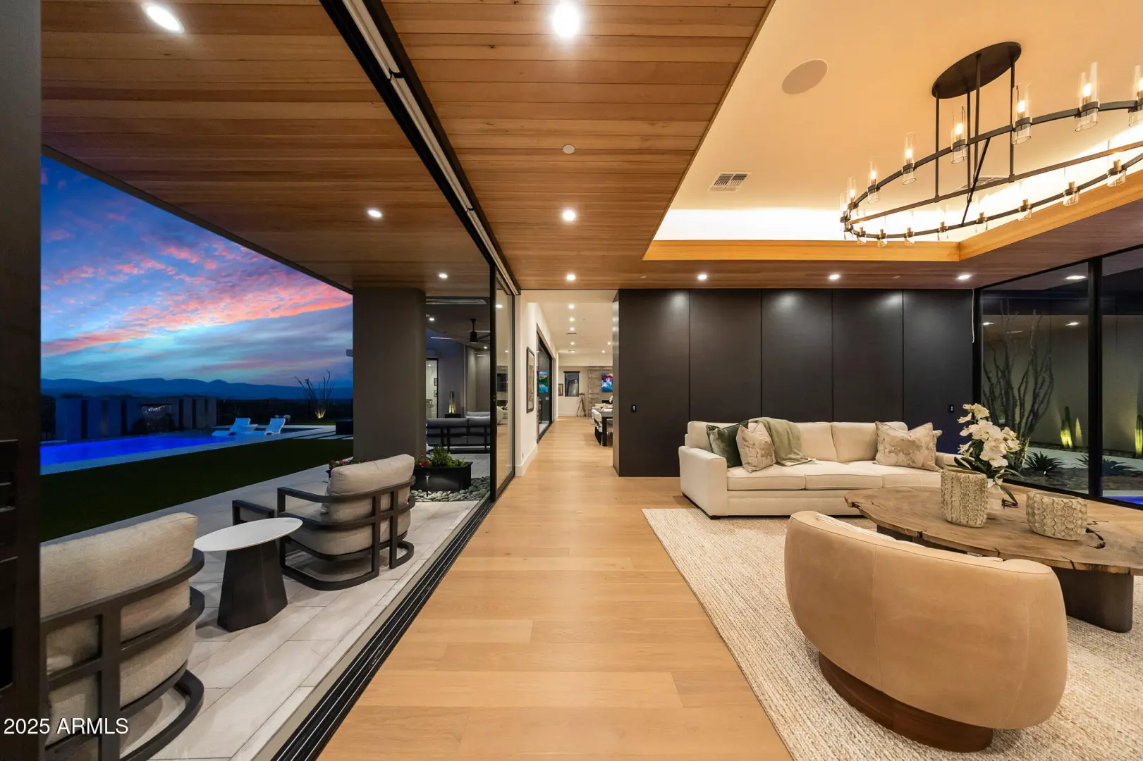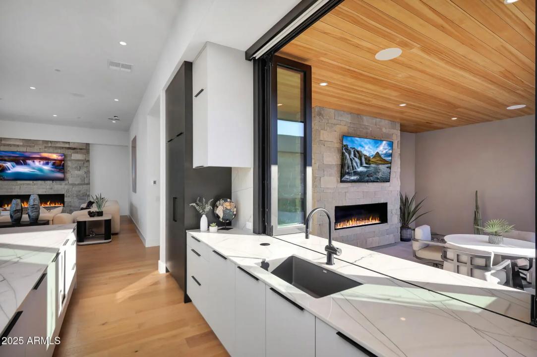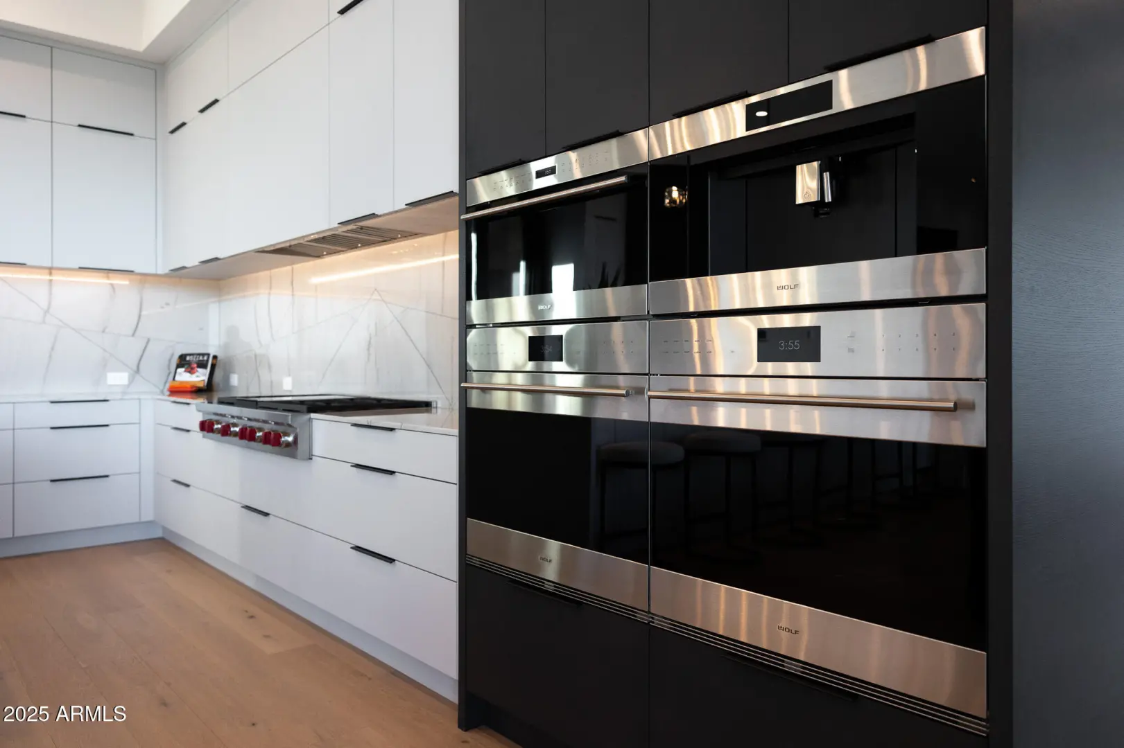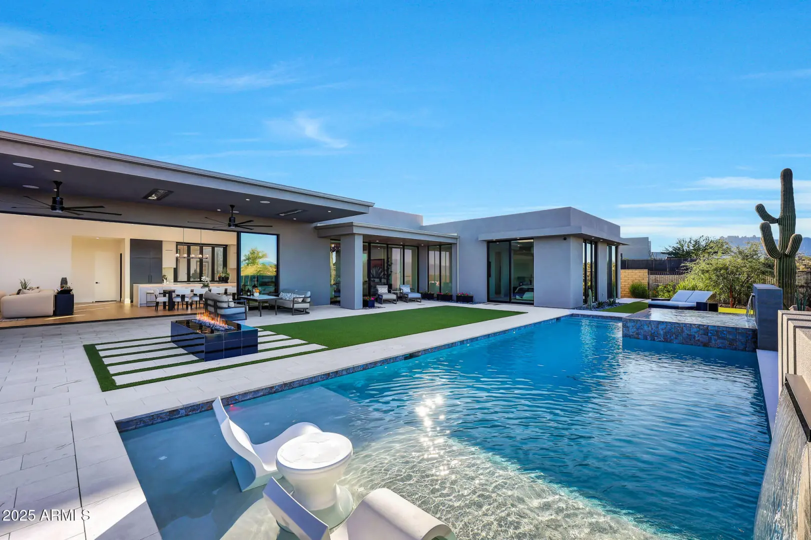 Embrace North Scottsdale living in this newly upgraded Shea Signature residence, set behind the double gates of The Signature at Storyrock. Positioned on the premier lot backing to 30,000+ acres of permanently protected McDowell Sonoran Preserve. Only months old and truly better than new this home offers rare privacy and uninterrupted desert and mountain views. Expansive walls of glass and 10' floor-to-ceiling windows create a refined indoor-outdoor connection, bringing natural light and the surrounding landscape into every space. Designed for luxury and livability, the spacious great room centers around a gourmet kitchen featuring Wolf/Sub-Zero appliances, double wall ovens, professional gas range, large communal island, extensive cabinetry, and an oversized walk-in pantry.