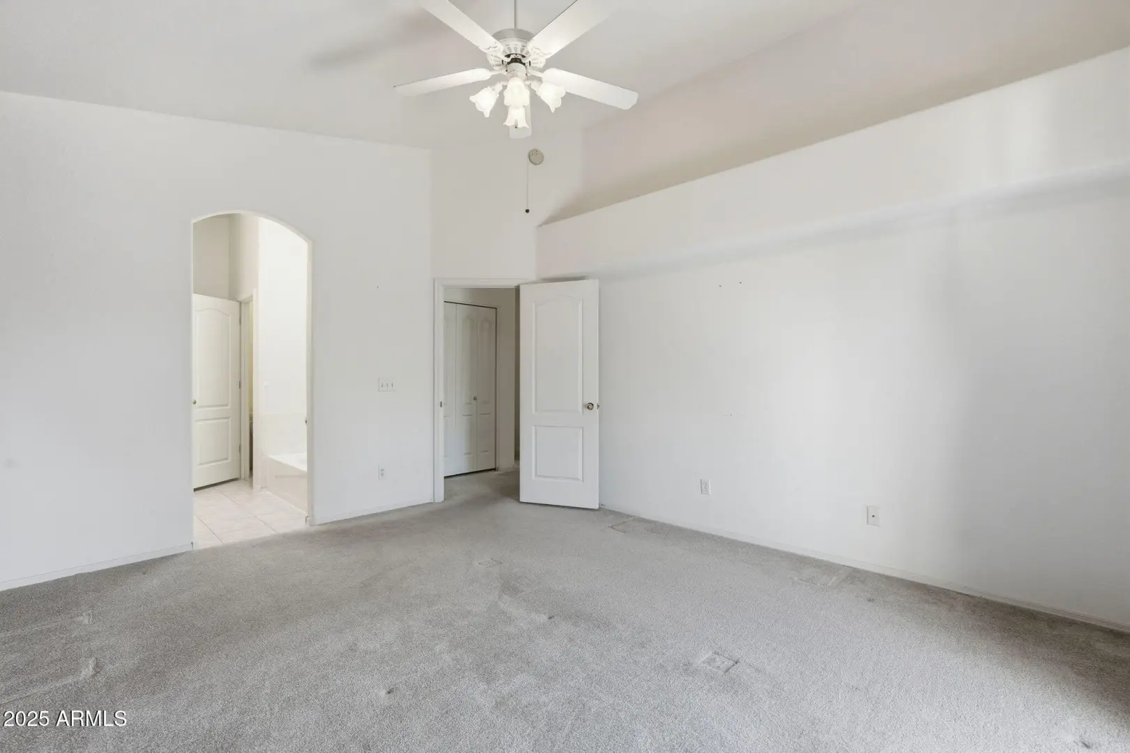 Charming 3 Bedroom Corner-Lot Gem. Lovely 3 bed, 2 bath split-floorplan home on a desirable corner lot. Bright, open, and airy with vaulted ceilings that make the home feel even more spacious. Lovingly maintained by the same owner since 2003 and very gently lived in—no children or pets. Features include neutral tile and carpet throughout, a skylight over the tub in the primary bath, metal security door and ceiling fans. Enjoy super-low-maintenance desert landscaping in both the front and back yards. Prime location with quick access to SR-51 and Loop 101, plus an easy walk to the mountain preserve and hiking trails. This home is a true gem!