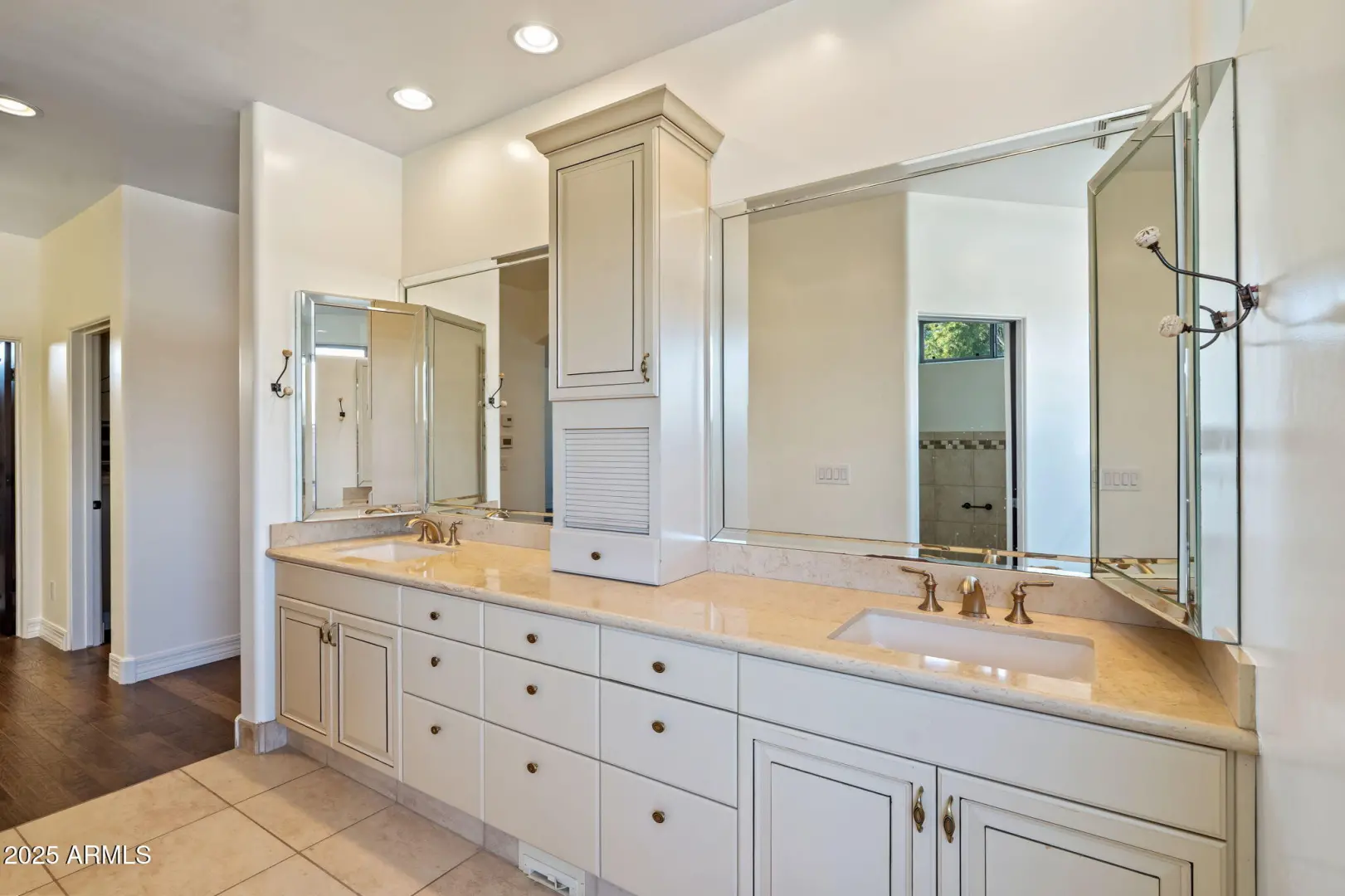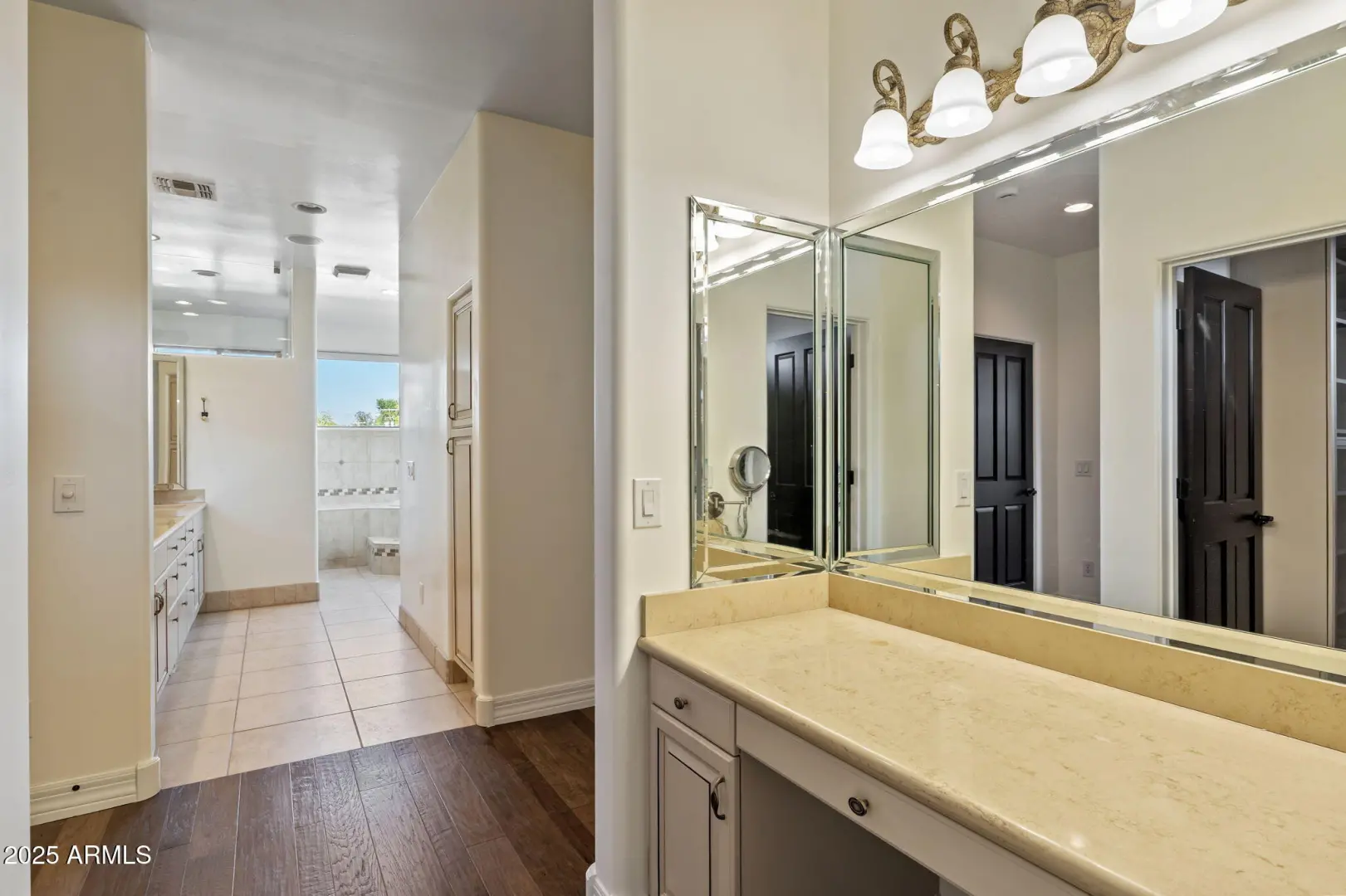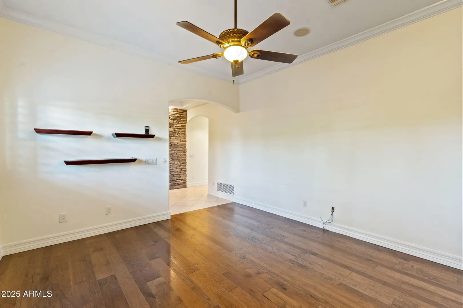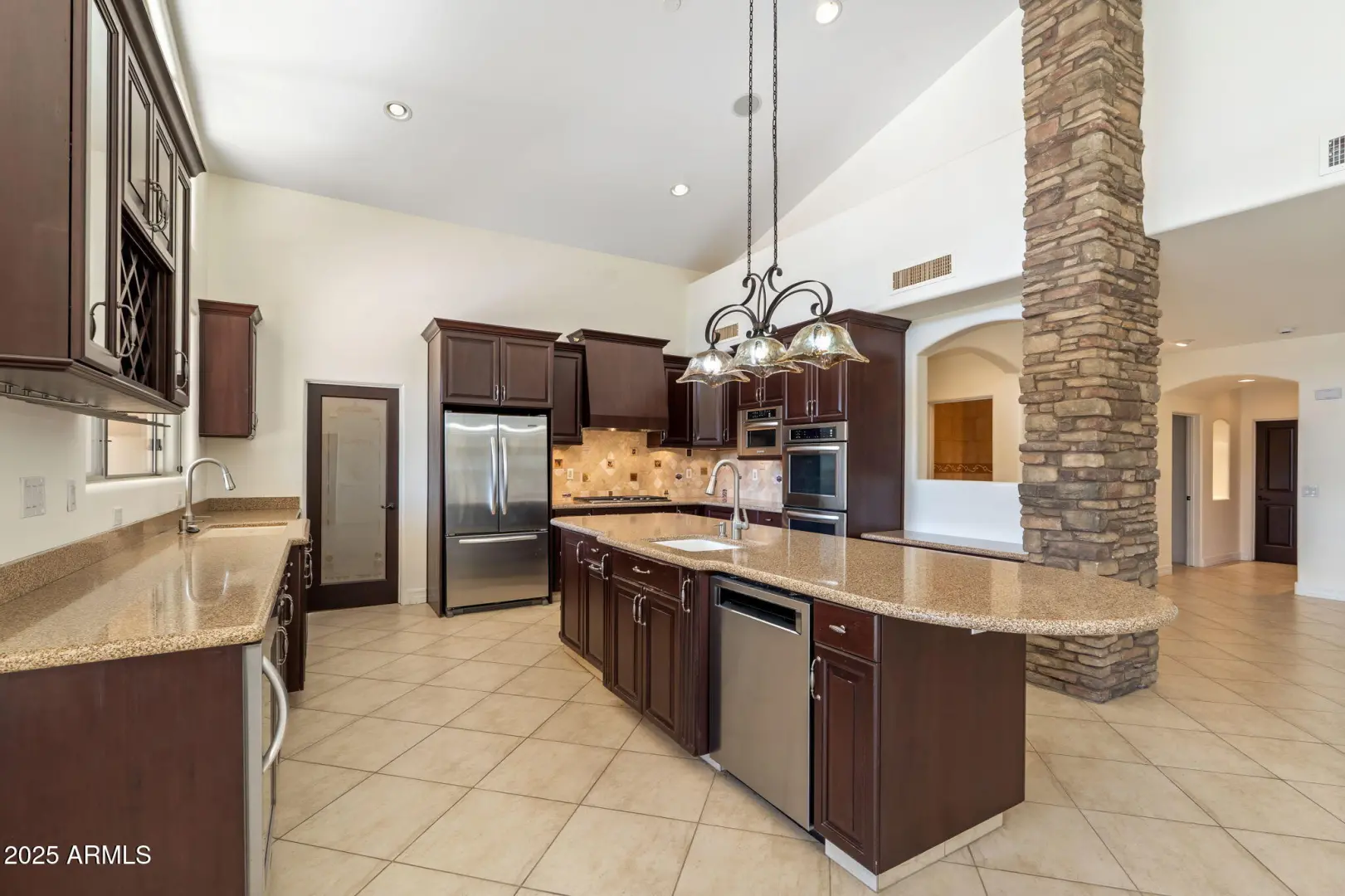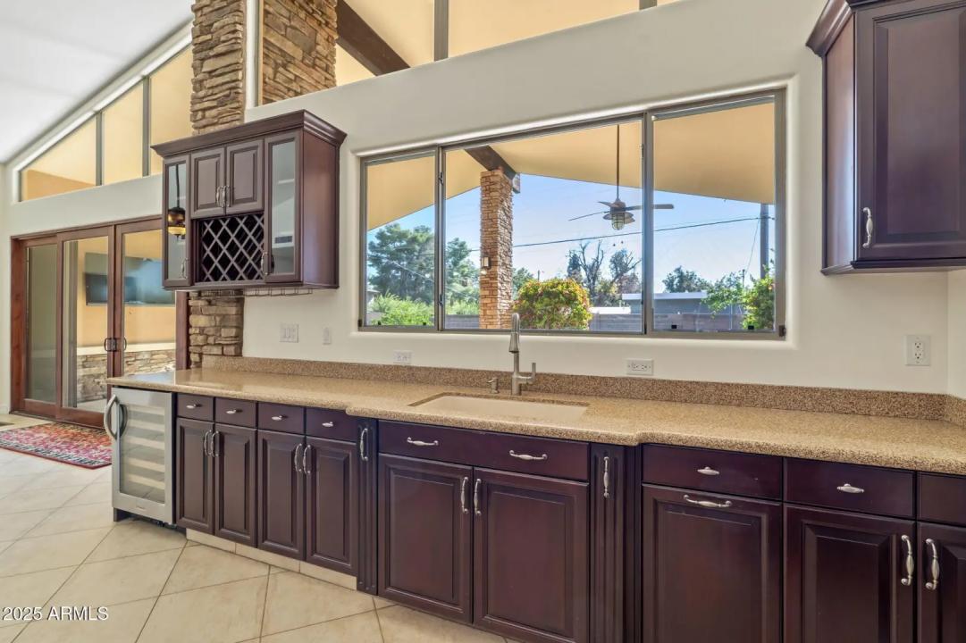 Lovingly remodeled and custom built by the original owner, this exceptional corner-lot home blends craftsmanship, comfort, and thoughtful design throughout. A private courtyard with a custom iron gate creates a warm and inviting entrance. Inside, vaulted ceilings elevate the main living space, where a gourmet kitchen anchors the heart of the home with island seating, stainless steel appliances, gas cooktop, double ovens, wine cooler, and abundant built-in shelving for both beauty and function. A generous walk-in pantry and custom cabinetry open to a spacious family room designed for gathering and everyday living. The main level offers two well-appointed bedrooms connected by a Jack-and-Jill bathroom.