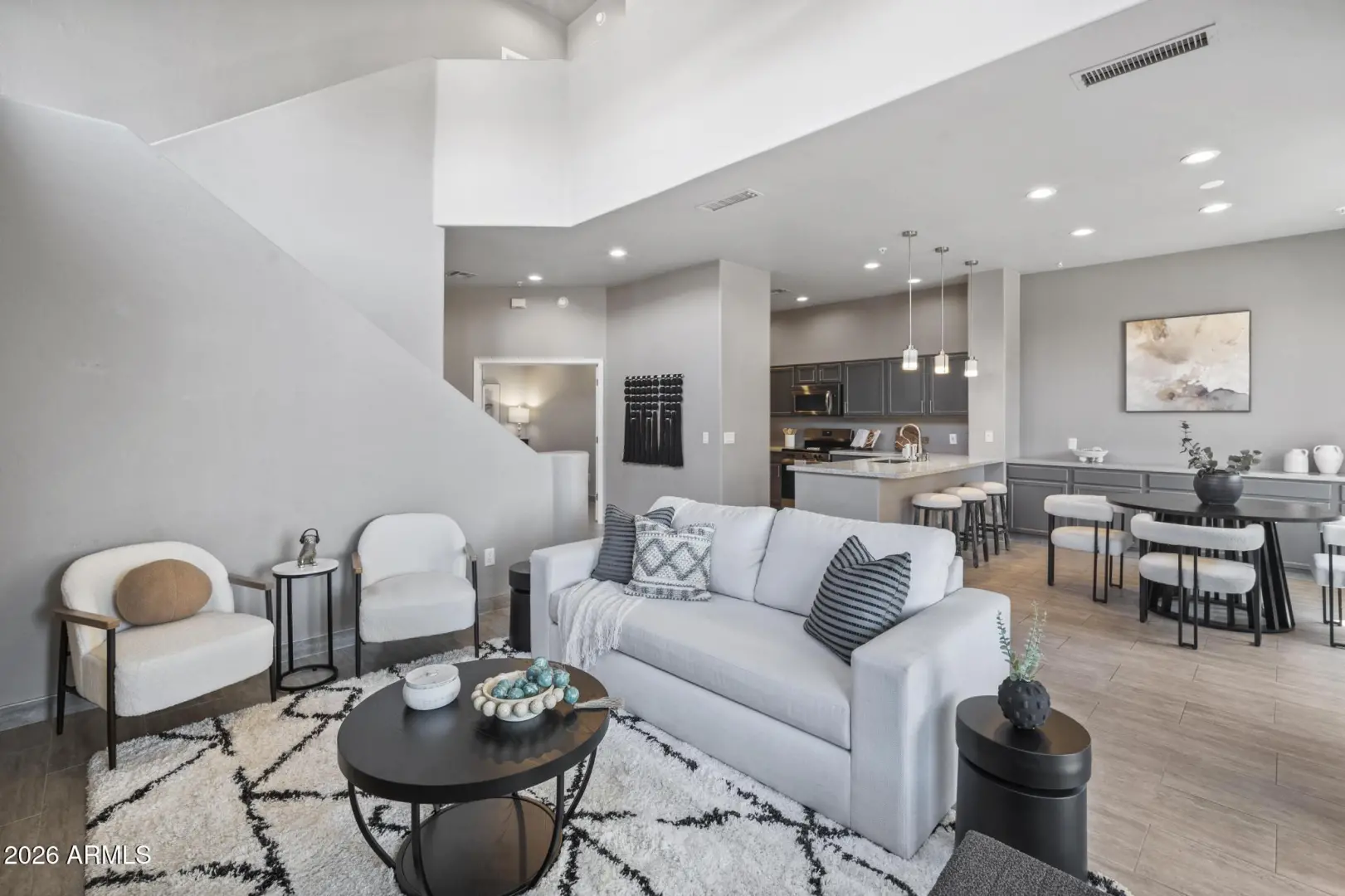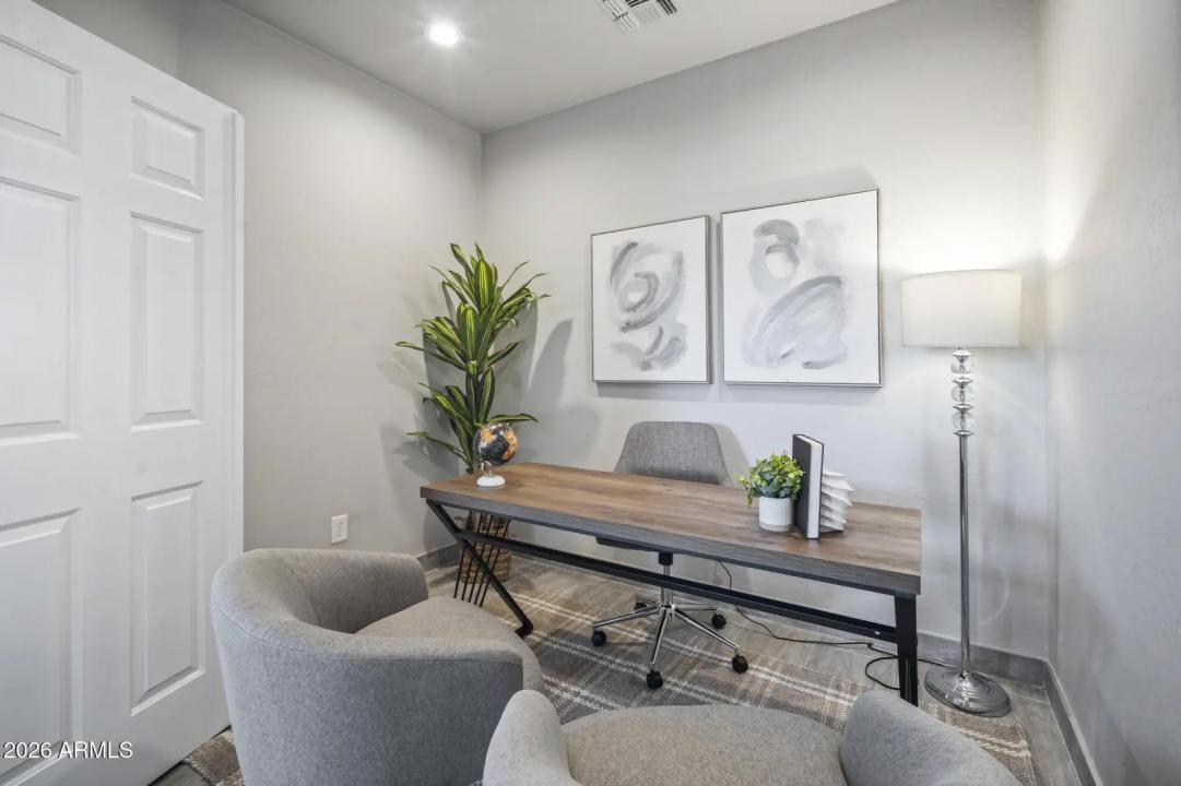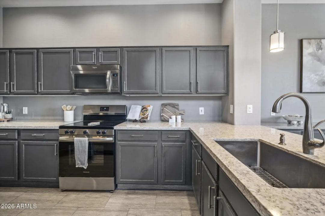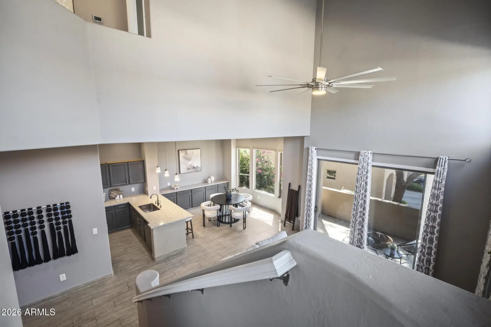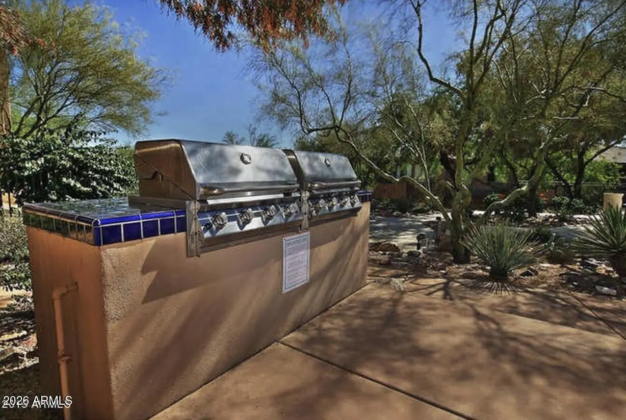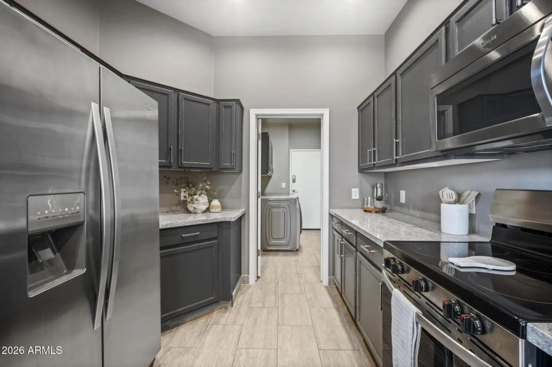 Resort living in the highly desirable gated community of Cachet at McDowell Mountain Ranch! This fully renovated townhome features soaring ceilings, abundant natural light & an open floorplan with wood-look tile throughout. The living room showcases a stacked stone gas fireplace & recessed lighting with designer finishes at every turn. Chef's kitchen offers custom gray cabinetry with pull-outs, quartz counters, breakfast bar with drop lighting & SS appliances. Flex den/office is on the main level. Upstairs you'll find two spacious ensuite bedrooms with fully remodeled baths, modern vanities & raised sinks. The primary suite boasts a freestanding soaking tub, oversized shower with deco tile & big walk-in closet. This unit also includes an attached two car garage! Enjoy breathtaking McDowell
