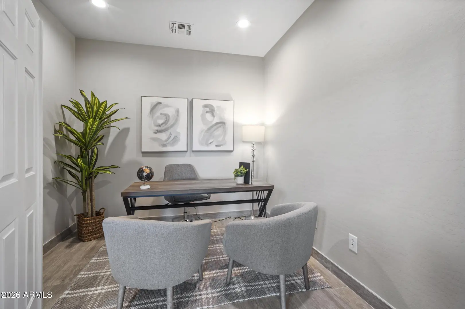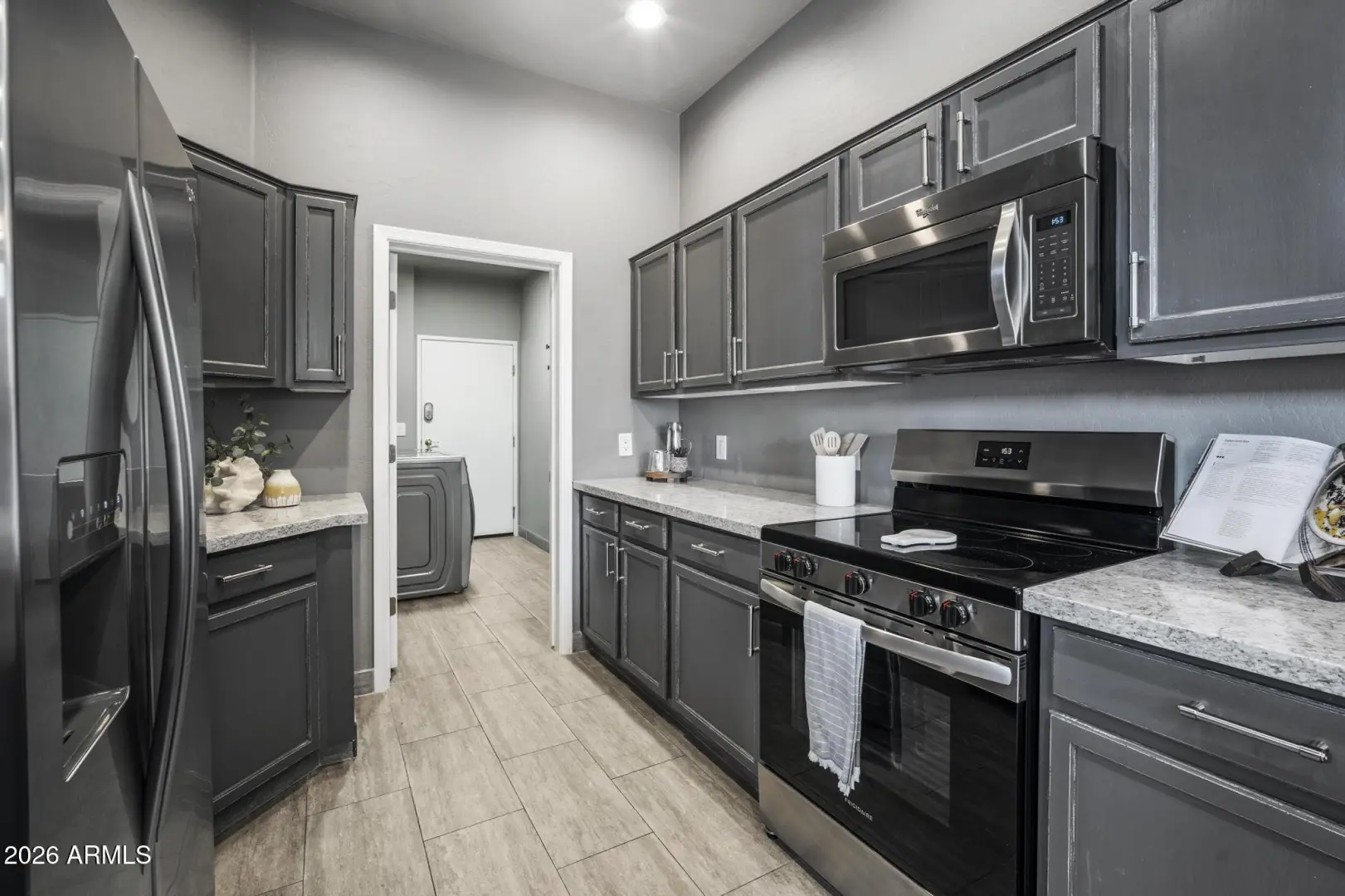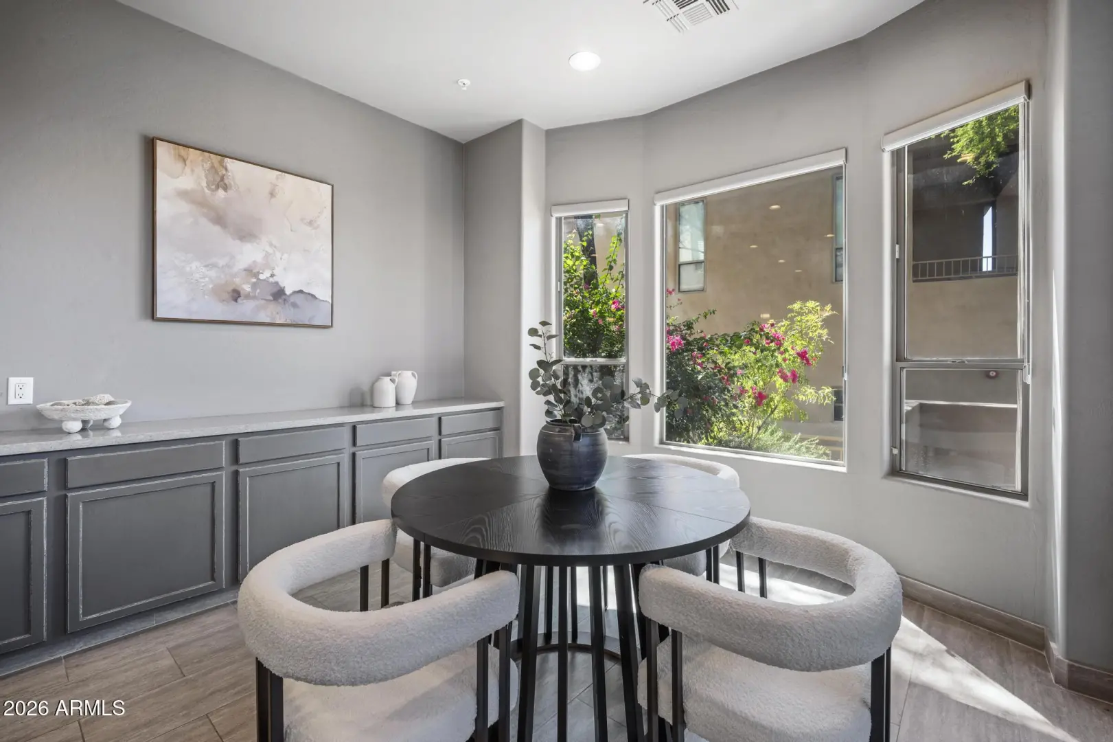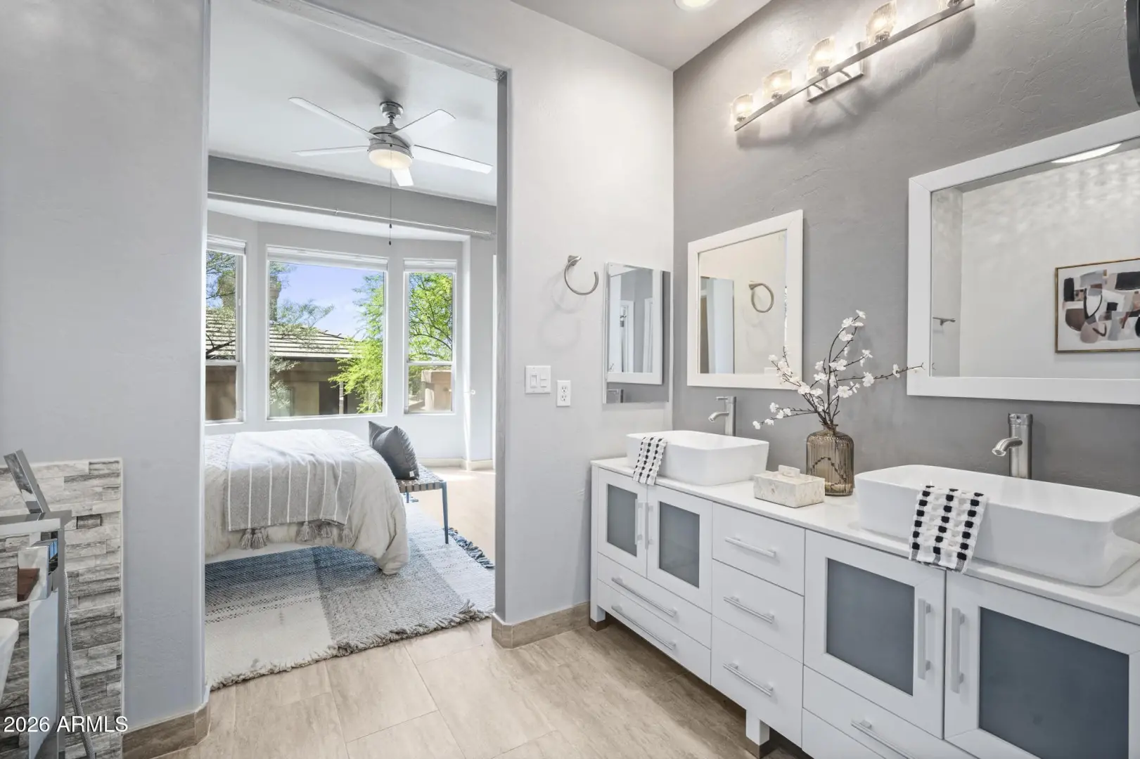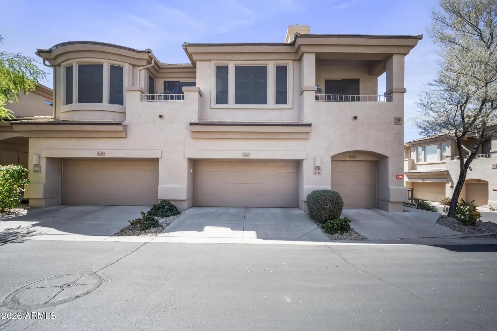 Resort living in the highly desirable gated community of Cachet at McDowell Mountain Ranch! This fully renovated townhome features soaring ceilings, abundant natural light & an open floorplan with wood-look tile throughout. The living room showcases a stacked stone gas fireplace & recessed lighting with designer finishes at every turn. Chef's kitchen offers custom gray cabinetry with pull-outs, quartz counters, breakfast bar with drop lighting & SS appliances. Flex den/office is on the main level. Upstairs you'll find two spacious ensuite bedrooms with fully remodeled baths, modern vanities & raised sinks. The primary suite boasts a freestanding soaking tub, oversized shower with deco tile & big walk-in closet. This unit also includes an attached two car garage! Enjoy breathtaking McDowell