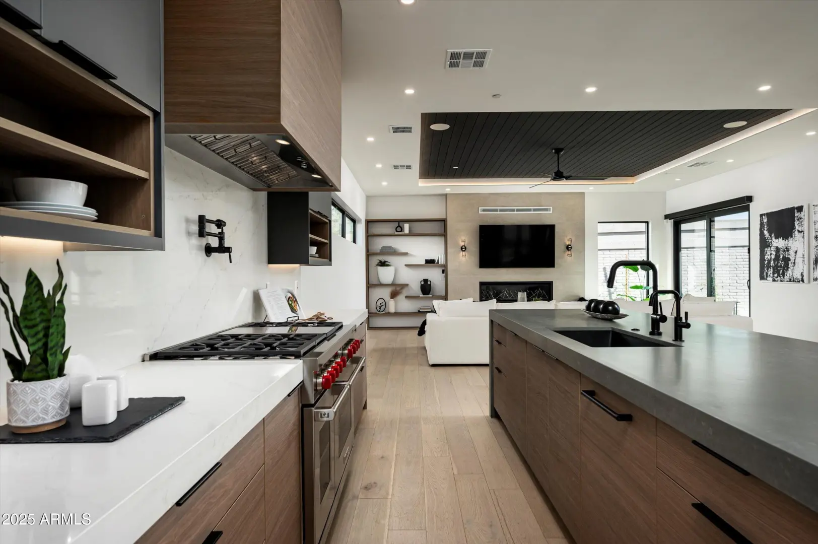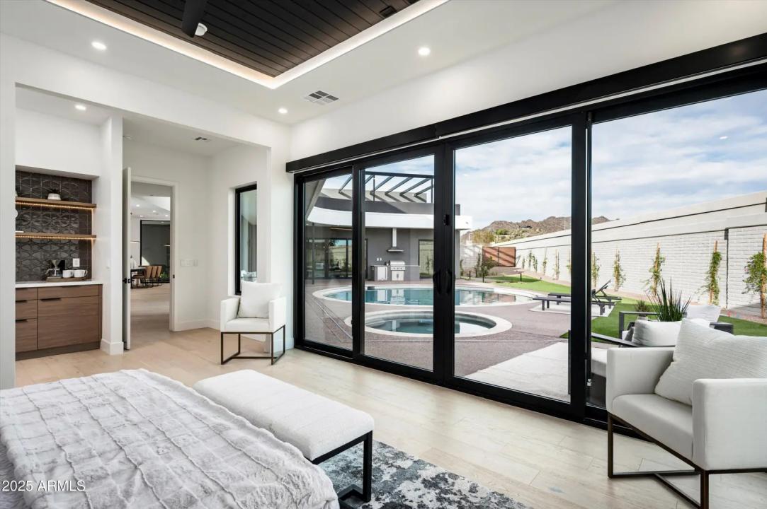 Sleek modern design by Blue Sky Homes completed in 2024. This impressive property delivers high design with low environmental impact. Encompassing 5,186 square feet, it includes 5 bedrooms and 5.5 bathrooms, all thoughtfully laid out to support health, comfort, and efficiency. Built with advanced materials and systems, it surpasses standard new builds by 50% in energy performance and holds both Energy Star and Indoor AirPlus certifications. Natural light pours through oversized windows, bringing warmth and brightness into every corner. The open-concept kitchen connects to the dining and living areas, anchored by a sleek 60-inch gas fireplace.
