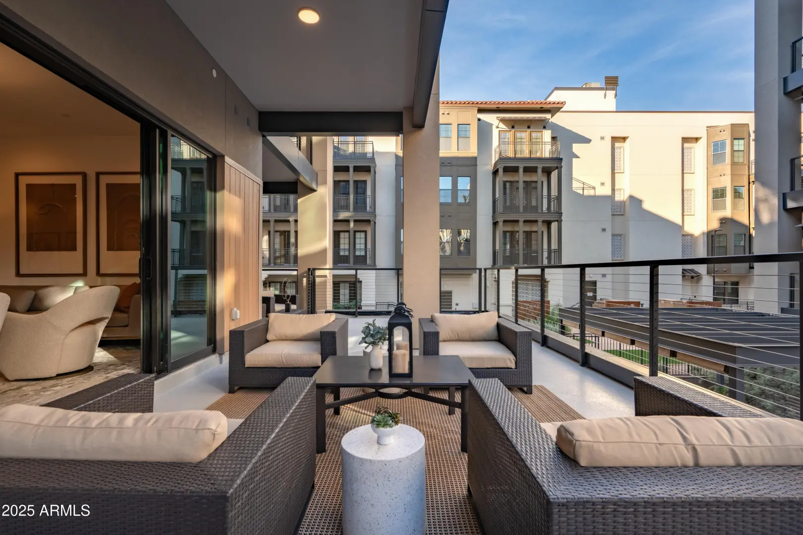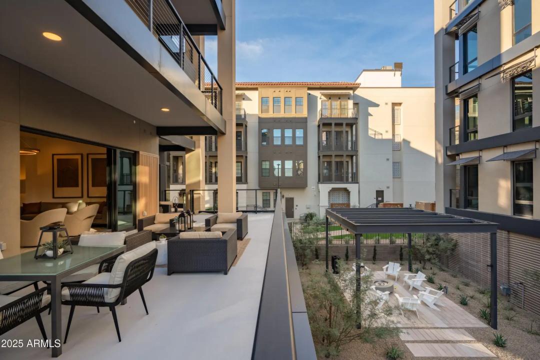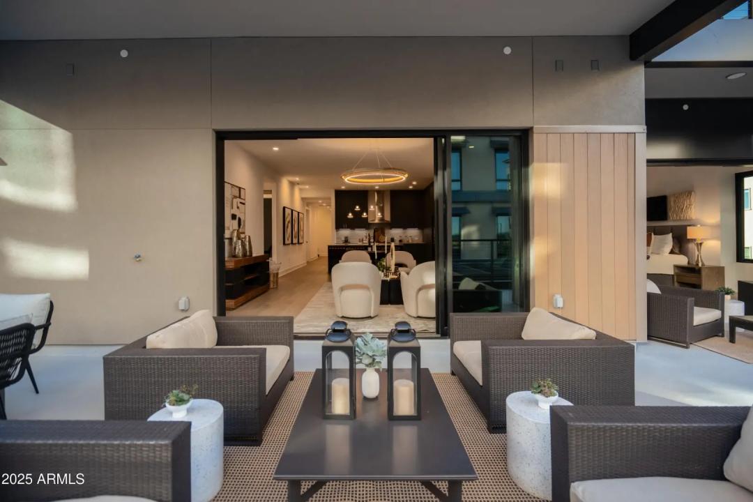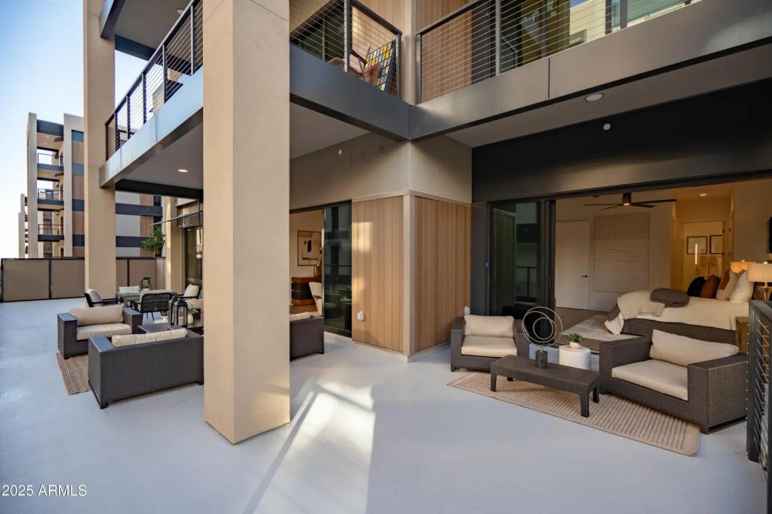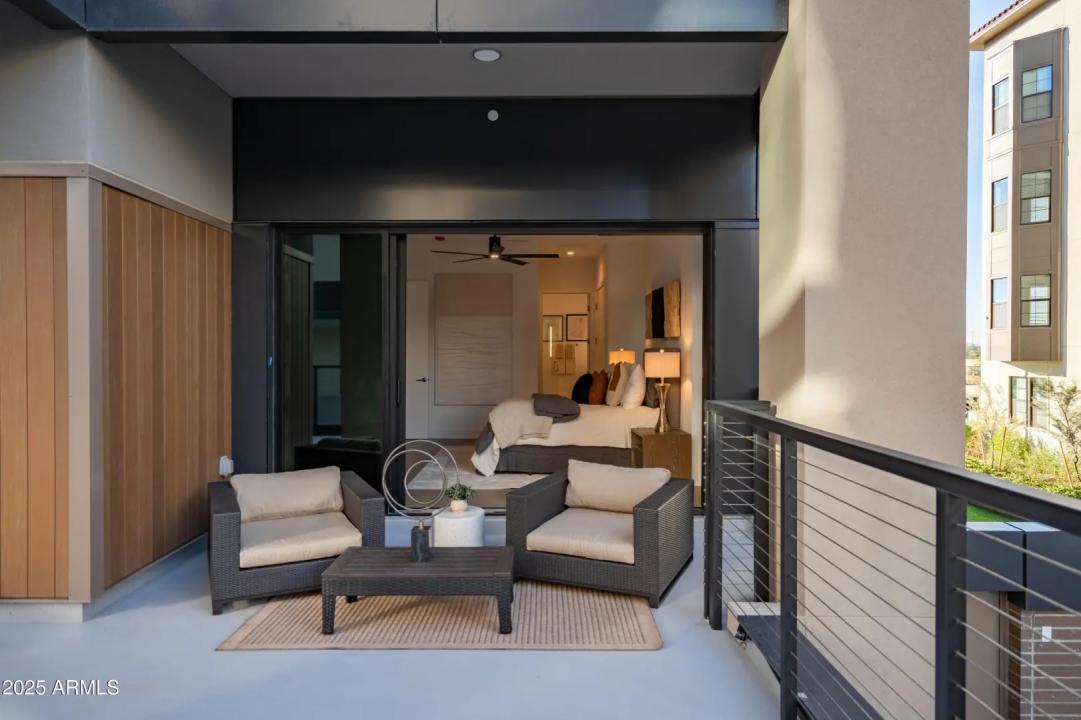 Experience modern luxury and effortless living in this beautifully appointed condo located in the prestigious Portico Condominiums, a gated North Scottsdale community known for its upscale design and exceptional lifestyle offerings. This single-level home features an open-concept floor plan, HUGE patio and designer finishes with abundant natural light throughout. The gourmet kitchen showcases top of line cabinetry, Sub-Zero and Wolf appliances, and an oversized quartzite island that flows seamlessly into the spacious great room and private covered patio—perfect for entertaining or unwinding. The primary suite boasts a spa-inspired bath with dual vanities, a walk-in shower, and his-and-hers walk-in closets. Great spaces including oversized guest rooms and a quaint office.