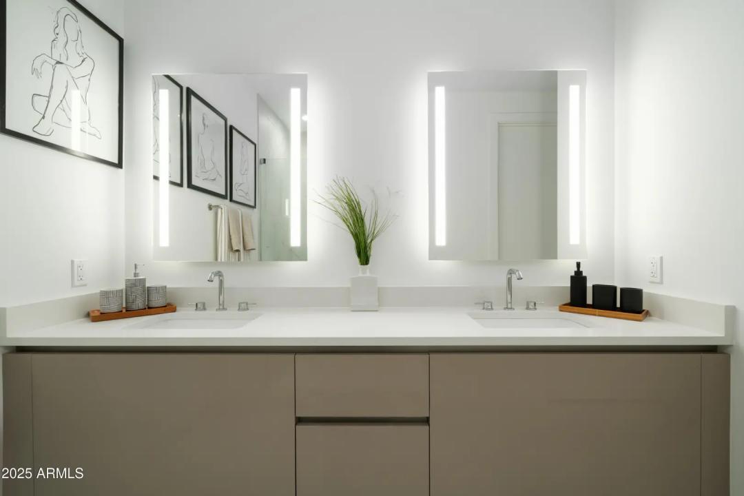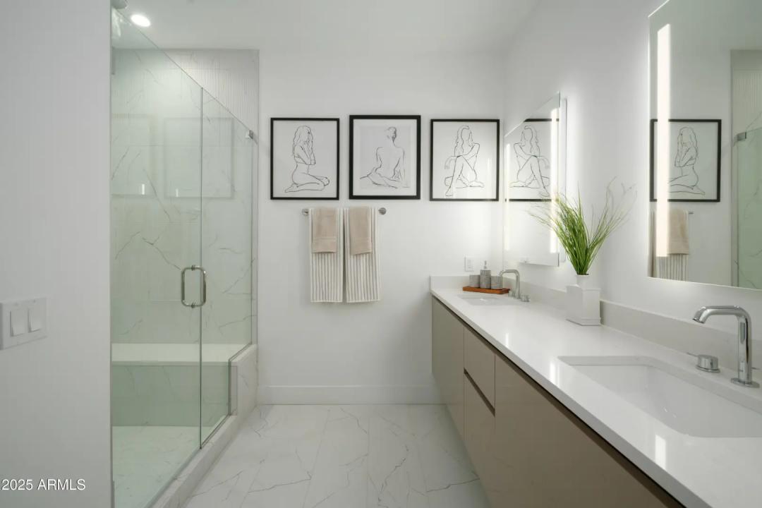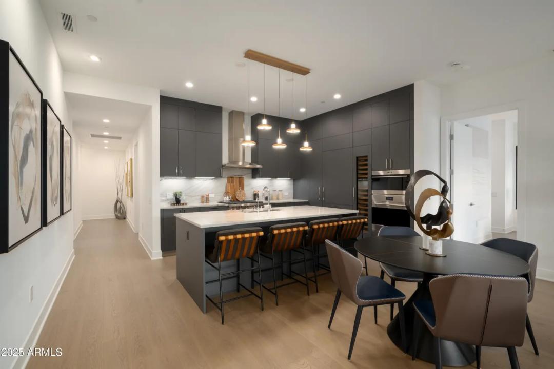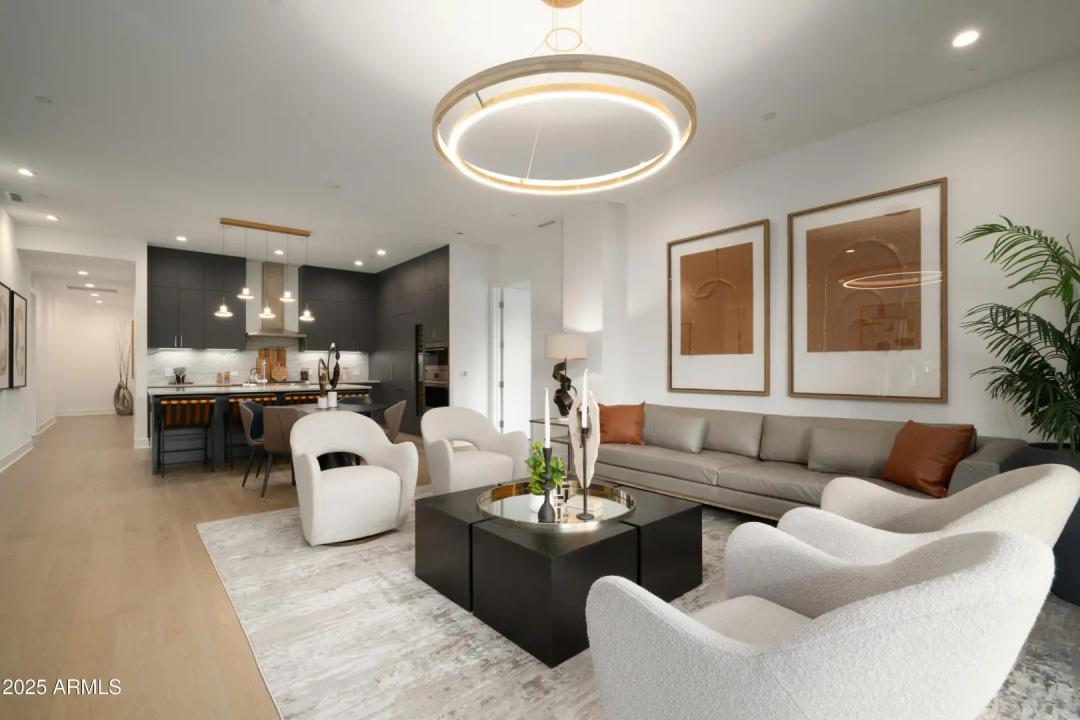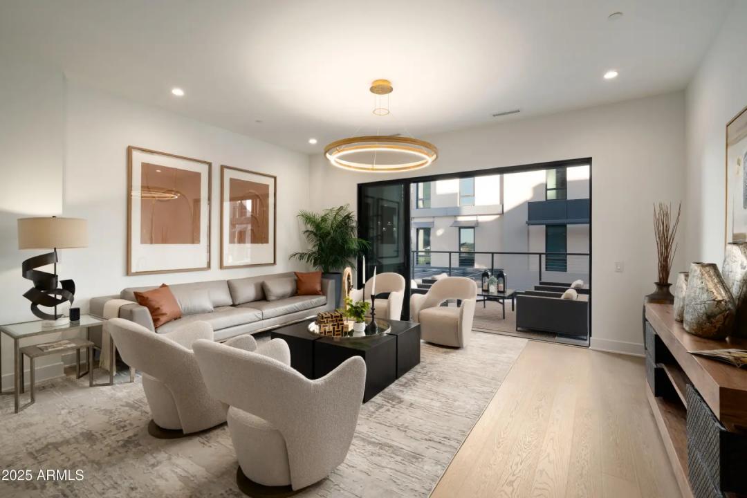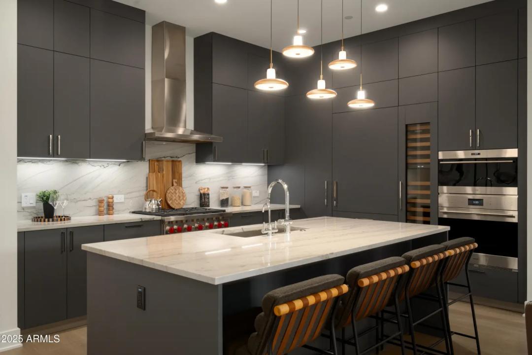 Experience modern luxury and effortless living in this beautifully appointed condo located in the prestigious Portico Condominiums, a gated North Scottsdale community known for its upscale design and exceptional lifestyle offerings. This single-level home features an open-concept floor plan, HUGE patio and designer finishes with abundant natural light throughout. The gourmet kitchen showcases top of line cabinetry, Sub-Zero and Wolf appliances, and an oversized quartzite island that flows seamlessly into the spacious great room and private covered patio—perfect for entertaining or unwinding. The primary suite boasts a spa-inspired bath with dual vanities, a walk-in shower, and his-and-hers walk-in closets. Great spaces including oversized guest rooms and a quaint office.