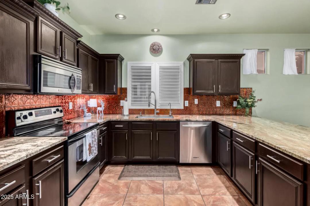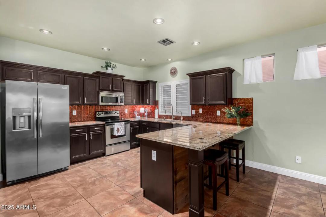 Gorgeous 4 bed, 3 bath, 2,252 sq ft Fincher Farms home in a prime Gilbert location! Enjoy a bright open floor plan with vaulted ceilings and a kitchen featuring granite countertops, stainless steel appliances, and ample workspace. Gated walking access leads to SanTan Village Mall for shopping, dining, and entertainment. Close to the upcoming sports complex, Cosmo Dog Park, Mercy Gilbert Medical Center, and the VA clinic—great for families and commuters. Located in the top-rated Gilbert Public School District near Ashland Ranch Elementary, South Valley Junior High, and Campo Verde High.