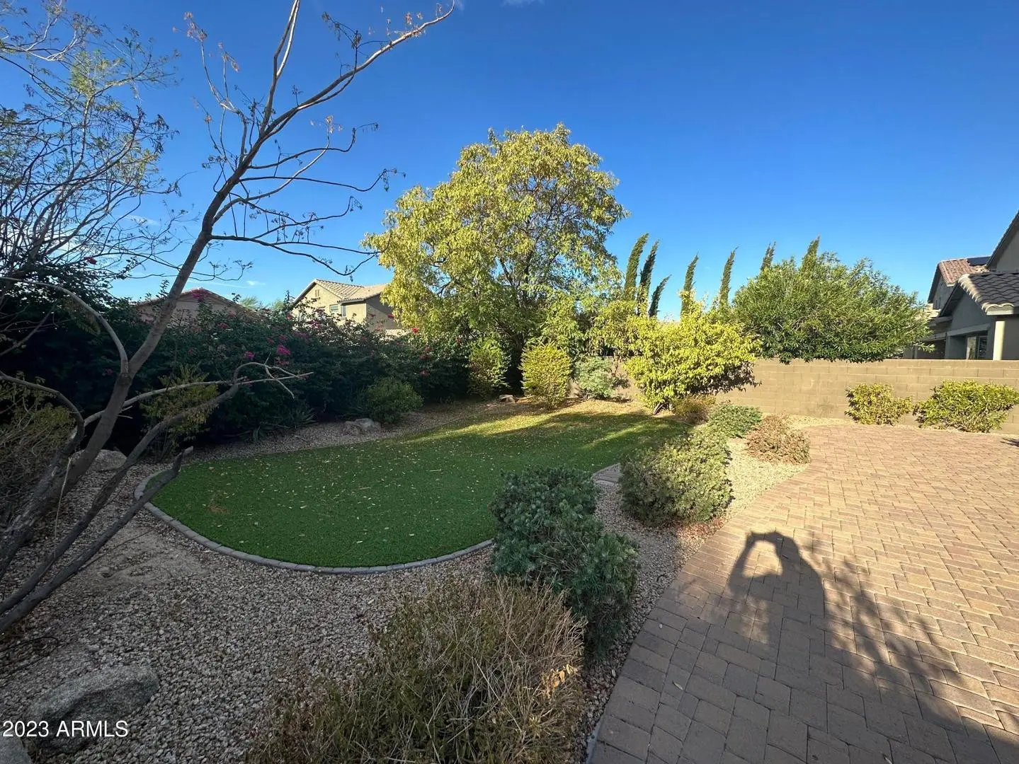 This amazing executive home in the exclusive Desert Ridge Community of Fireside is stunning! A welcoming courtyard as you enter the front of the home. Beautiful travertine flooring throughout with 5 bedrooms plus a den. Great for a large family. Great yard for entertaining. The community center features a workout facility, tennis courts, basketball courts, clubhouse and resort style pools that you will have full access to. Must see!