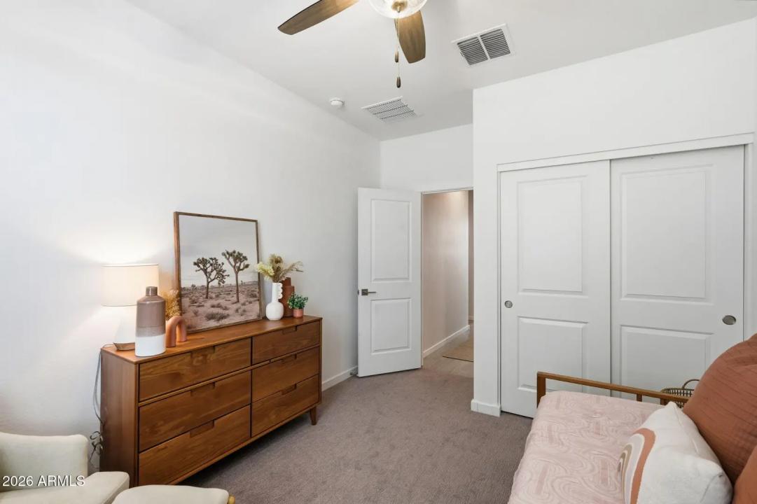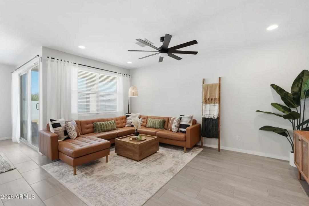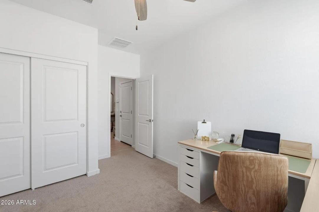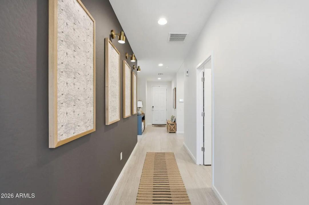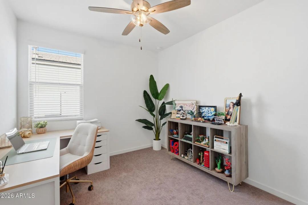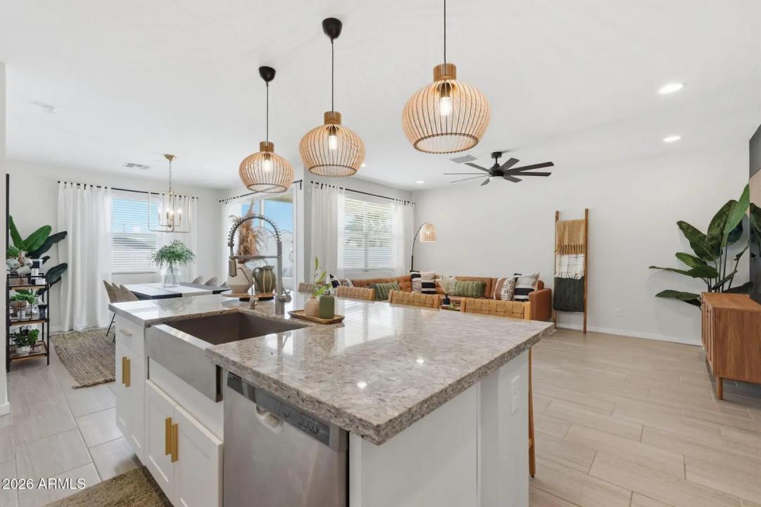 This GORGEOUS 4 bed, 2 bath, 1819 sq ft single-level home in one of the Valley's rising hotspots is too good to be true. Built in 2021 by Meritage, this PRISTINE home features WOOD-PLANK TILE flooring, cozy carpet in the bedrooms, STYLISH FIXTURES, faux wood blinds, ACCENT WALLS, a split floor plan, and a BRIGHT, OPEN living/dining area. The stylish kitchen offers GRANITE countertops, white cabinetry w/ gold hardware, herringbone BACKSPLASH, and a modern layout that FEELS LIKE A MODEL HOME! The landscaped backyard with lush grass is perfect for relaxing or entertaining and ready for your personal touch. Don't miss your chance to make this beautiful space your home!