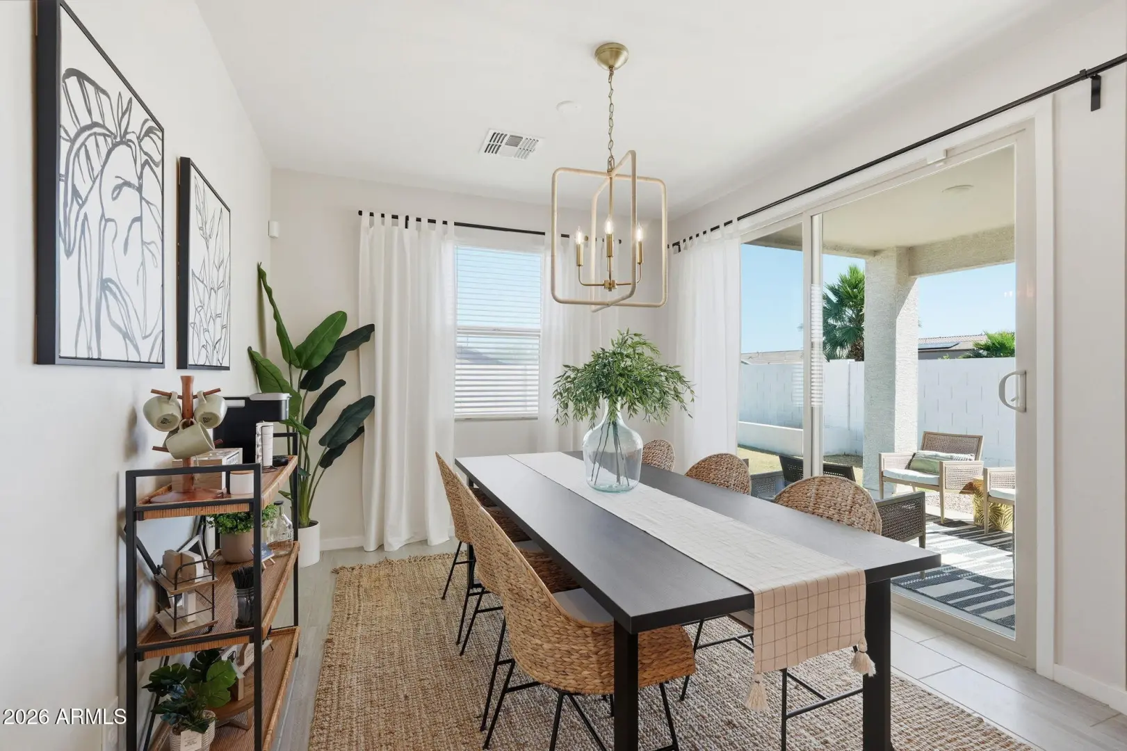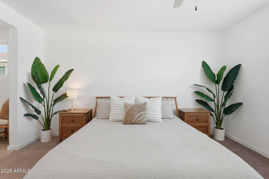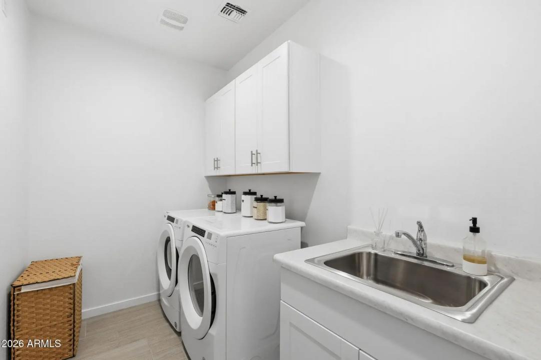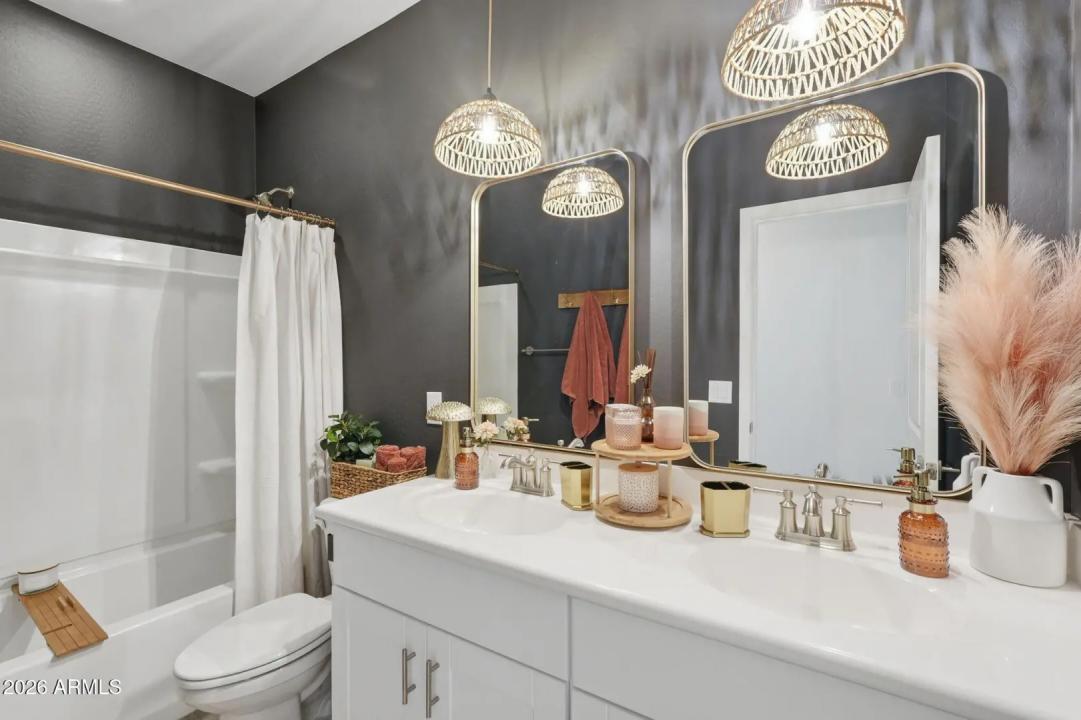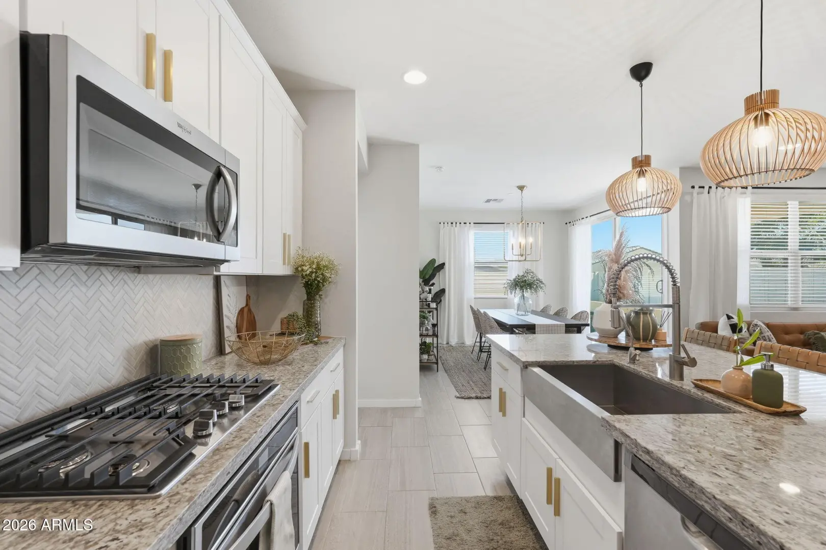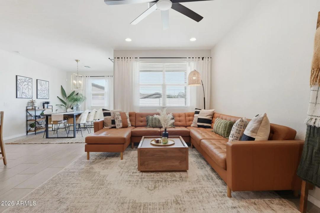 This GORGEOUS 4 bed, 2 bath, 1819 sq ft single-level home in one of the Valley's rising hotspots is too good to be true. Built in 2021 by Meritage, this PRISTINE home features WOOD-PLANK TILE flooring, cozy carpet in the bedrooms, STYLISH FIXTURES, faux wood blinds, ACCENT WALLS, a split floor plan, and a BRIGHT, OPEN living/dining area. The stylish kitchen offers GRANITE countertops, white cabinetry w/ gold hardware, herringbone BACKSPLASH, and a modern layout that FEELS LIKE A MODEL HOME! The landscaped backyard with lush grass is perfect for relaxing or entertaining and ready for your personal touch. Don't miss your chance to make this beautiful space your home!