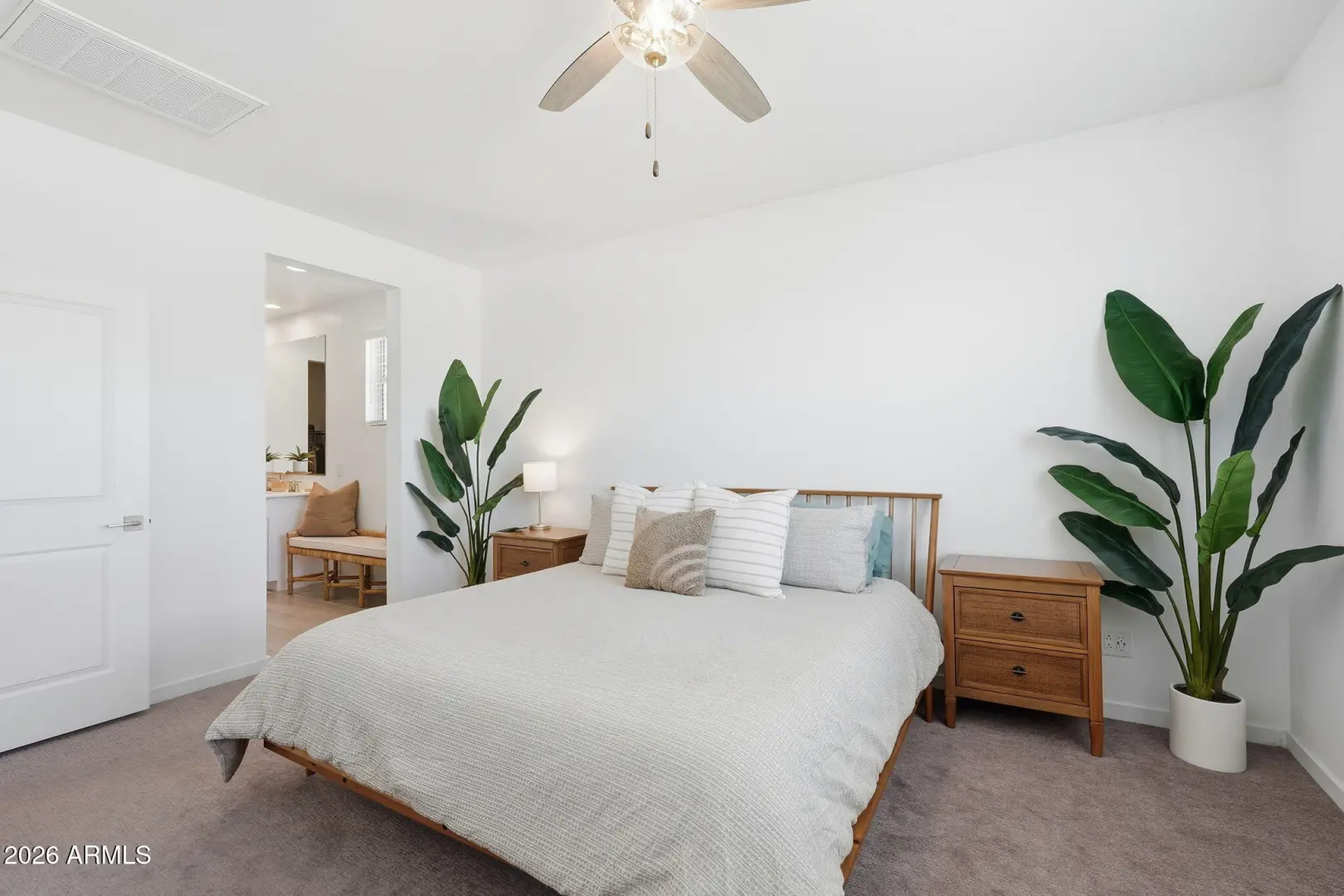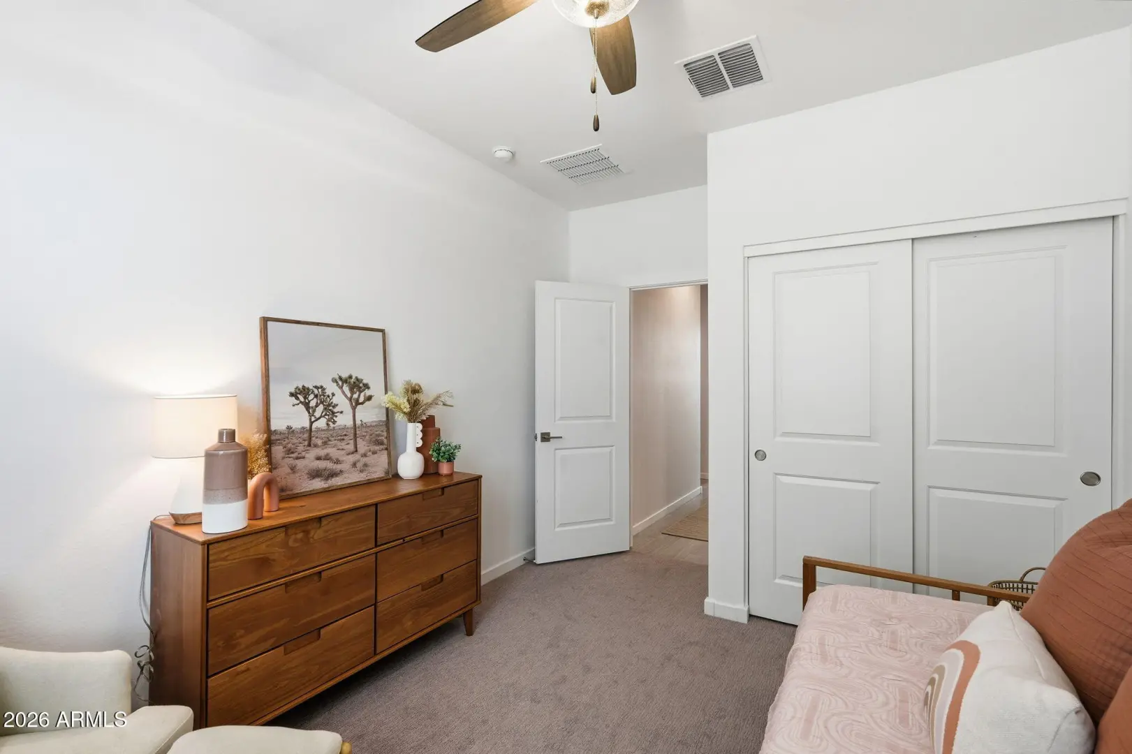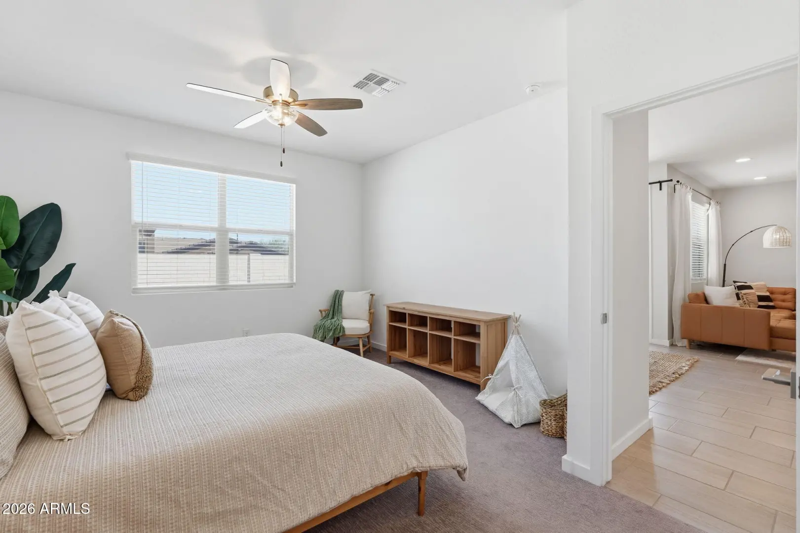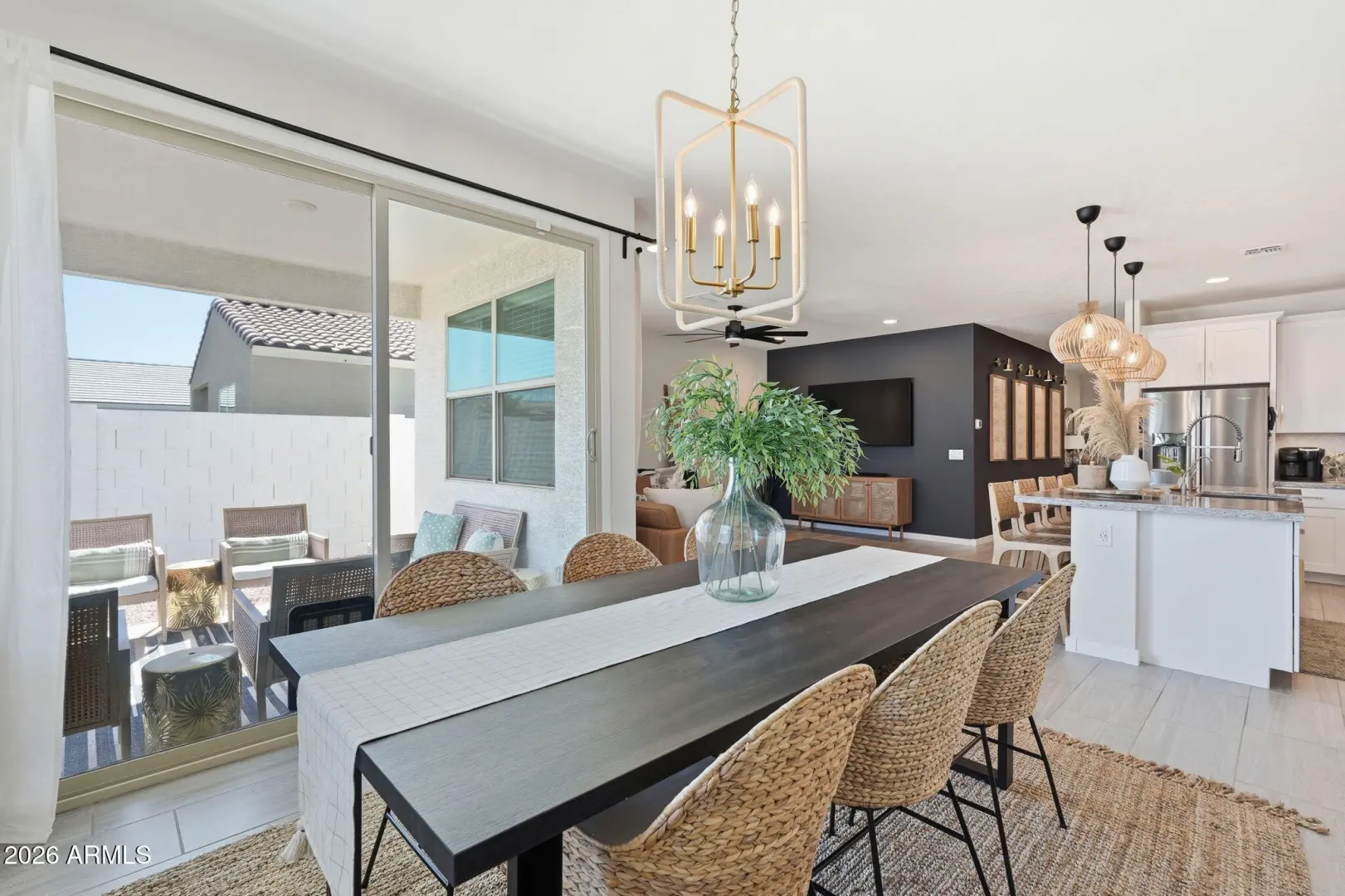 This GORGEOUS 4 bed, 2 bath, 1819 sq ft single-level home in one of the Valley's rising hotspots is too good to be true. Built in 2021 by Meritage, this PRISTINE home features WOOD-PLANK TILE flooring, cozy carpet in the bedrooms, STYLISH FIXTURES, faux wood blinds, ACCENT WALLS, a split floor plan, and a BRIGHT, OPEN living/dining area. The stylish kitchen offers GRANITE countertops, white cabinetry w/ gold hardware, herringbone BACKSPLASH, and a modern layout that FEELS LIKE A MODEL HOME! The landscaped backyard with lush grass is perfect for relaxing or entertaining and ready for your personal touch. Don't miss your chance to make this beautiful space your home!