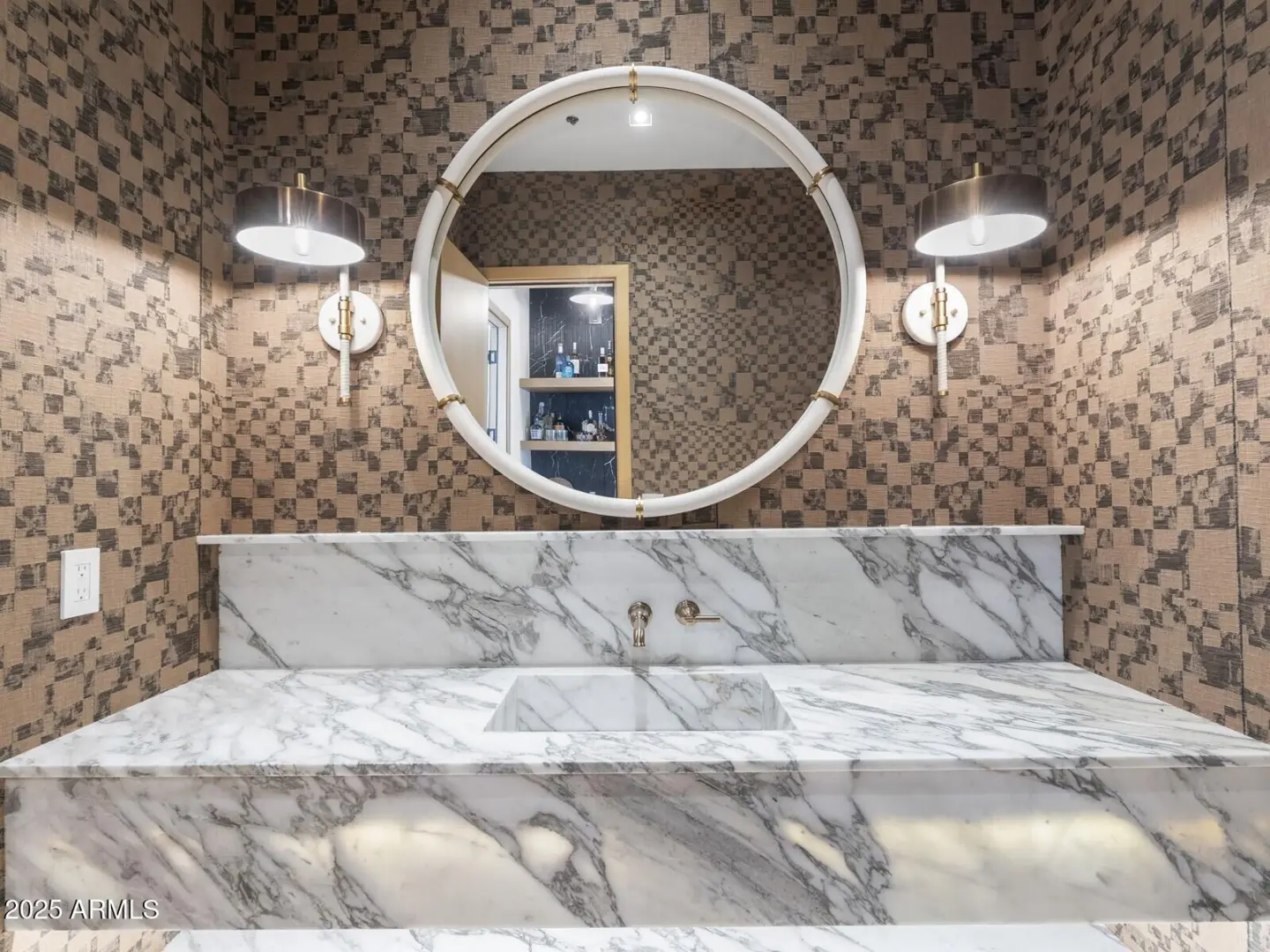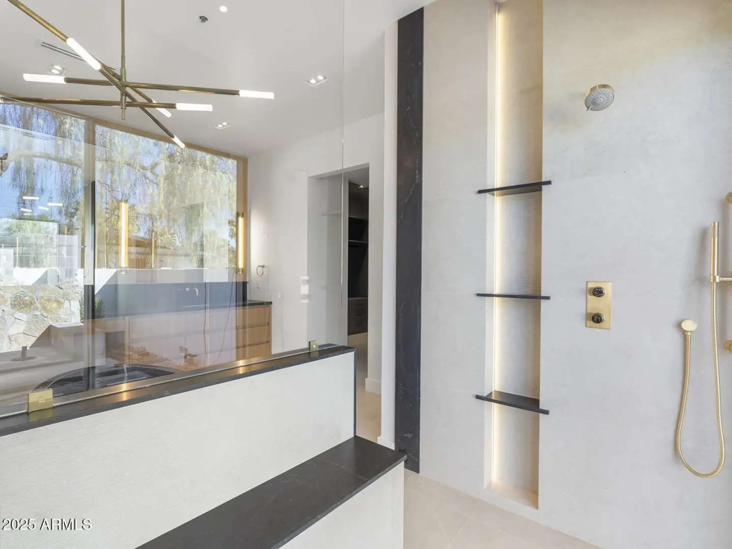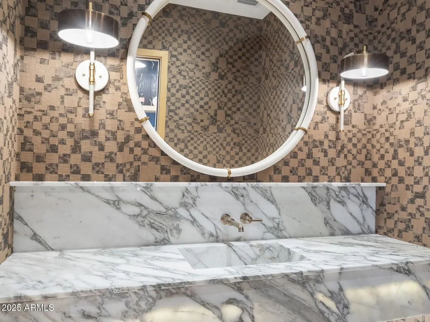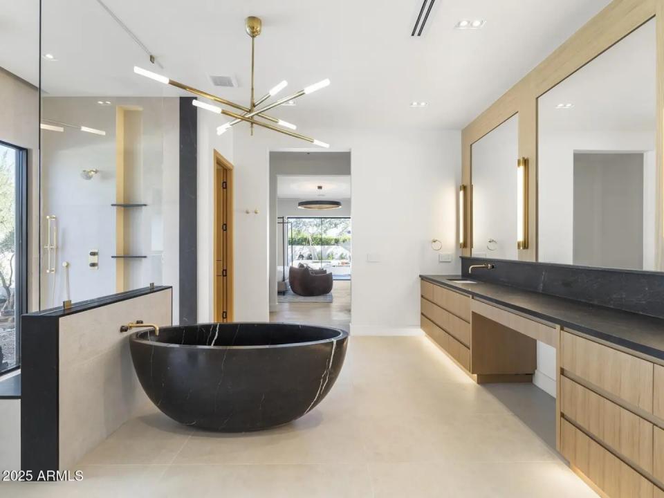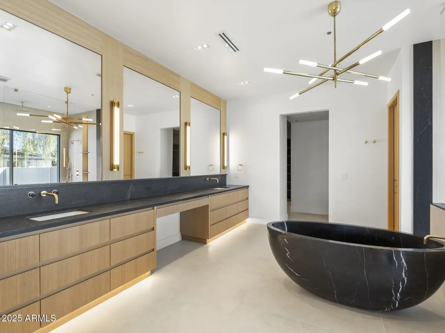 Stunning new construction in Paradise Valley, this 6,400 sq ft estate offers 6 bedrooms, 6.5 baths, a home office, and an attached casita. Thoughtfully designed for luxury living, the home features a 45' x 25' infinity pool with integrated spa and cold plunge, a butler's kitchen with oversized pantry, and a 118-bottle wine room. The chef's kitchen and butler's pantry showcase custom cabinetry and high-end finishes, blending elegance with functionality. The primary suite is a private retreat with a custom Isokern fireplace, dual water closets, custom marble bathtub, separate his-and-her walk-in closets with integrated washer/dryer, and a serene zen garden with outdoor shower. Expansive glass doors create seamless indoor-outdoor living with stunning Camelback Mountain views. See More & Vide