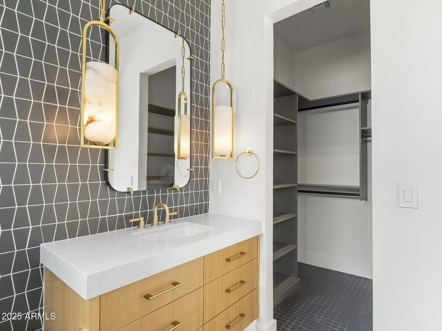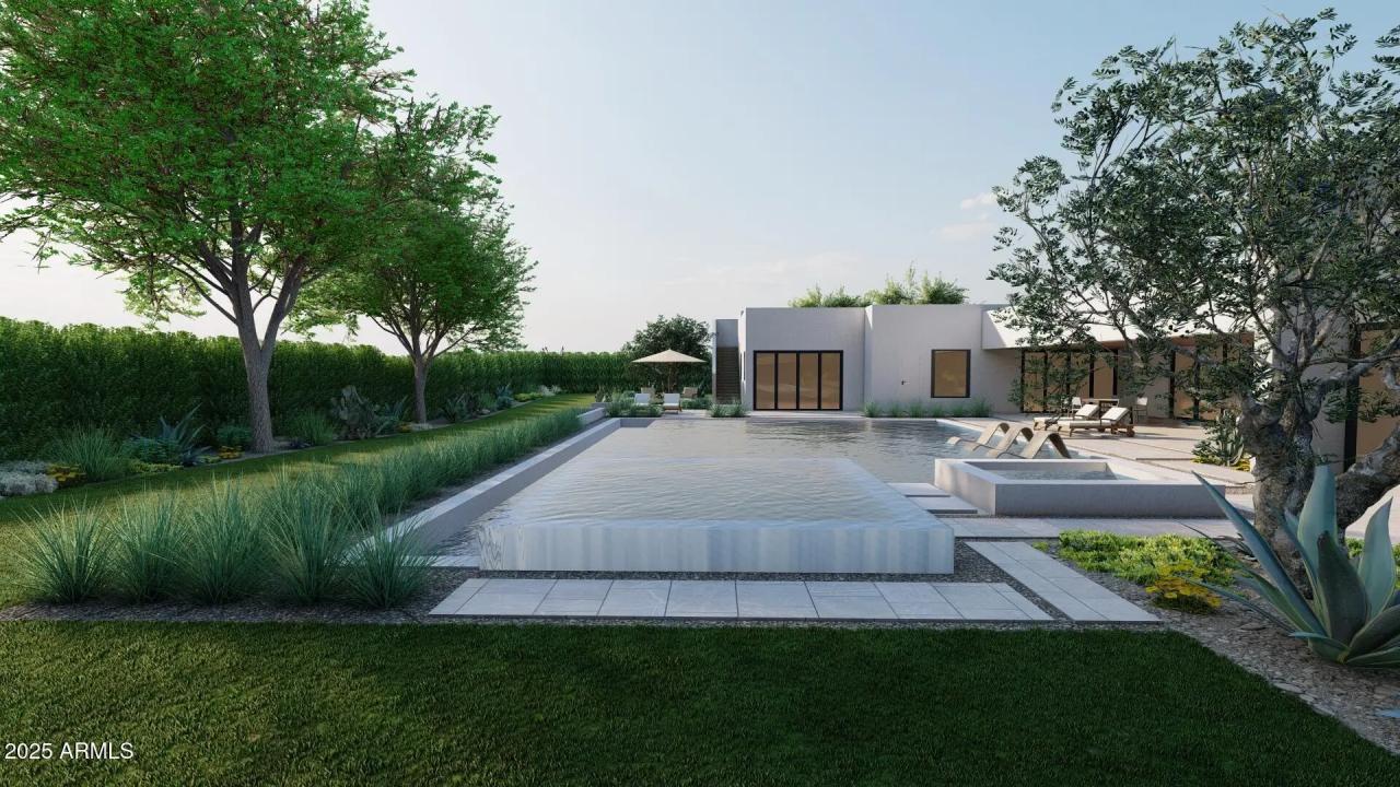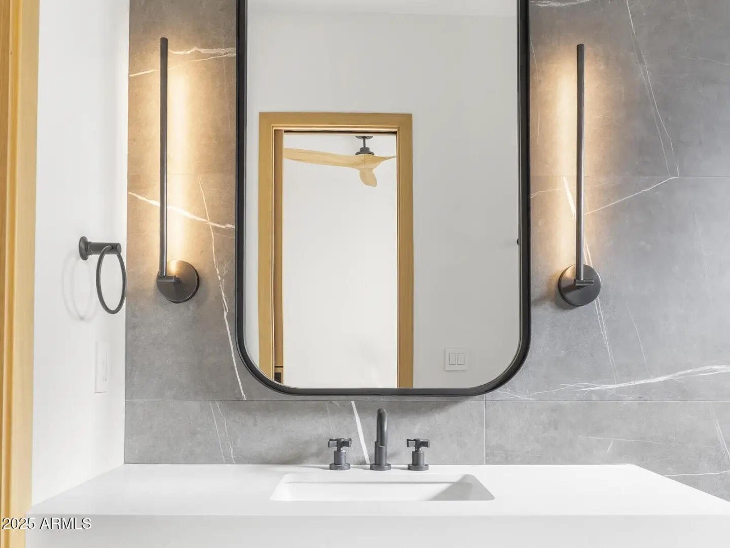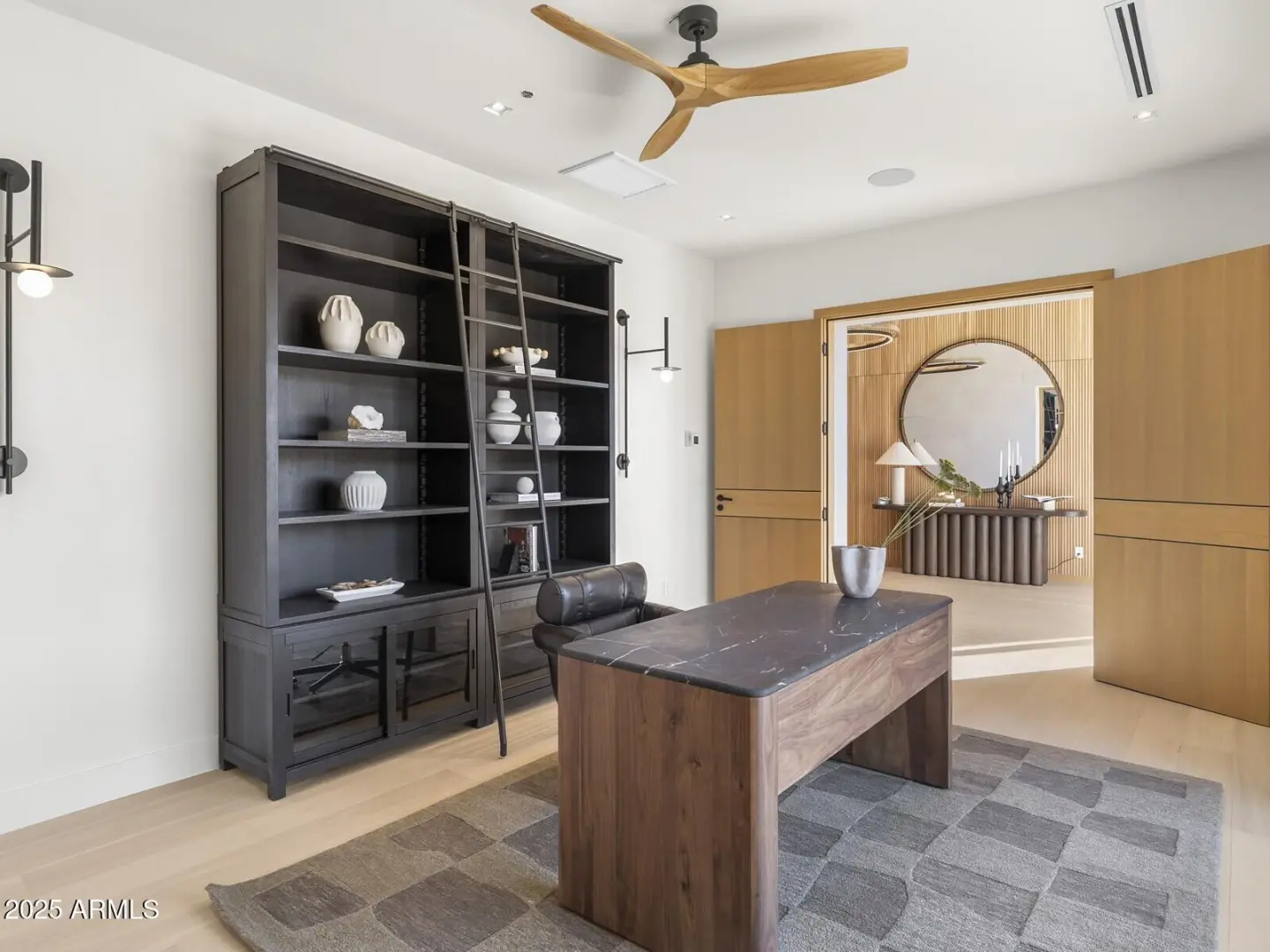 Stunning new construction in Paradise Valley, this 6,400 sq ft estate offers 6 bedrooms, 6.5 baths, a home office, and an attached casita. Thoughtfully designed for luxury living, the home features a 45' x 25' infinity pool with integrated spa and cold plunge, a butler's kitchen with oversized pantry, and a 118-bottle wine room. The chef's kitchen and butler's pantry showcase custom cabinetry and high-end finishes, blending elegance with functionality. The primary suite is a private retreat with a custom Isokern fireplace, dual water closets, custom marble bathtub, separate his-and-her walk-in closets with integrated washer/dryer, and a serene zen garden with outdoor shower. Expansive glass doors create seamless indoor-outdoor living with stunning Camelback Mountain views. See More & Vide