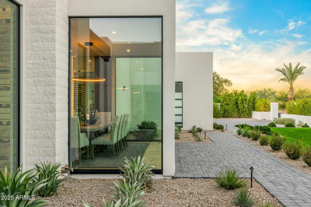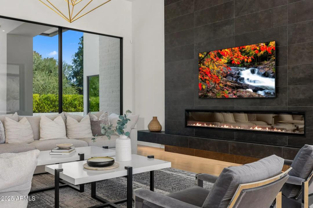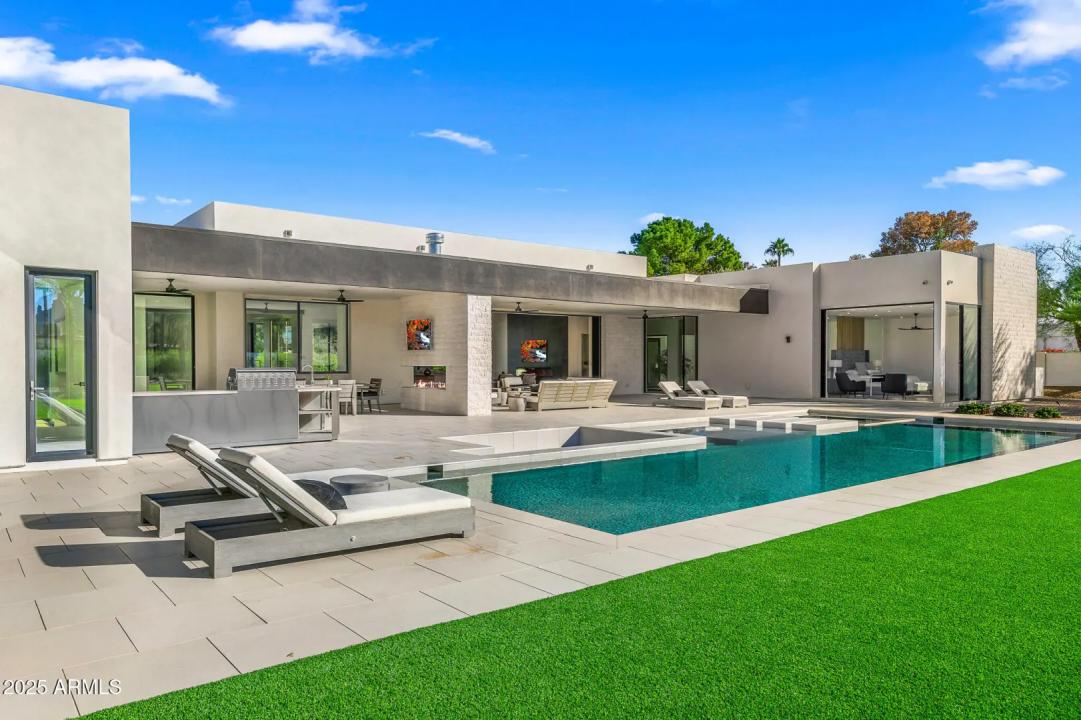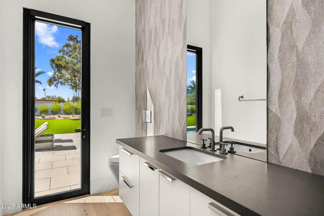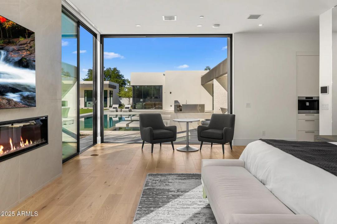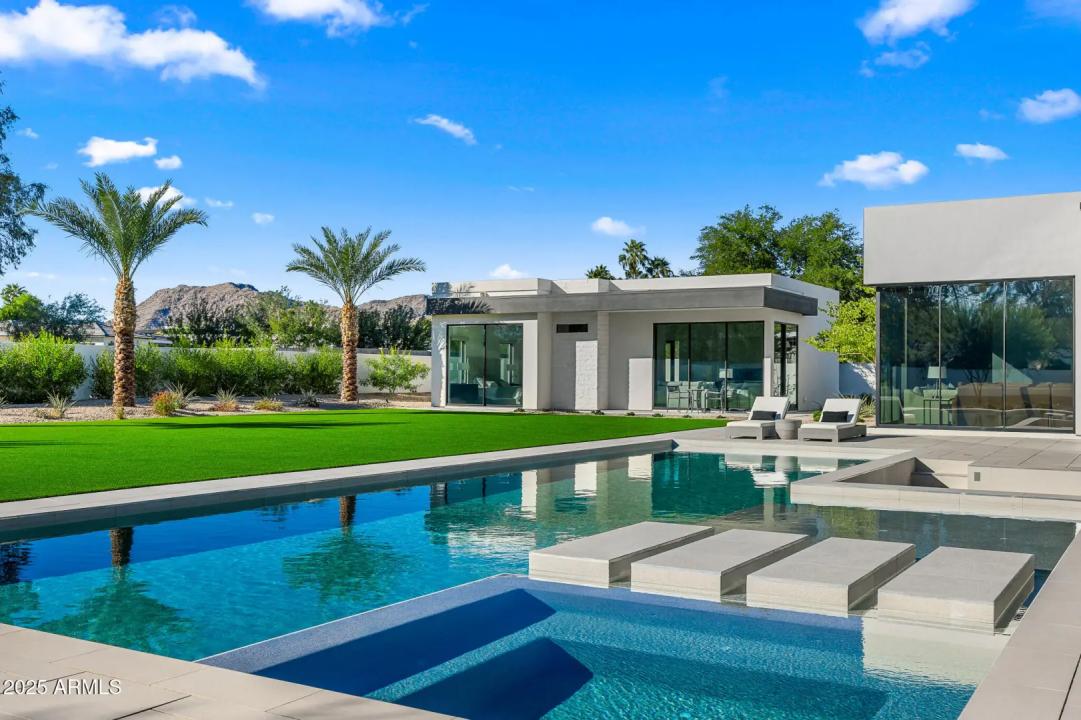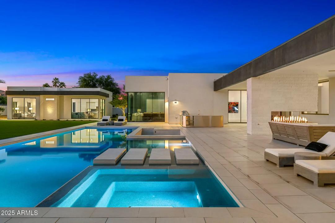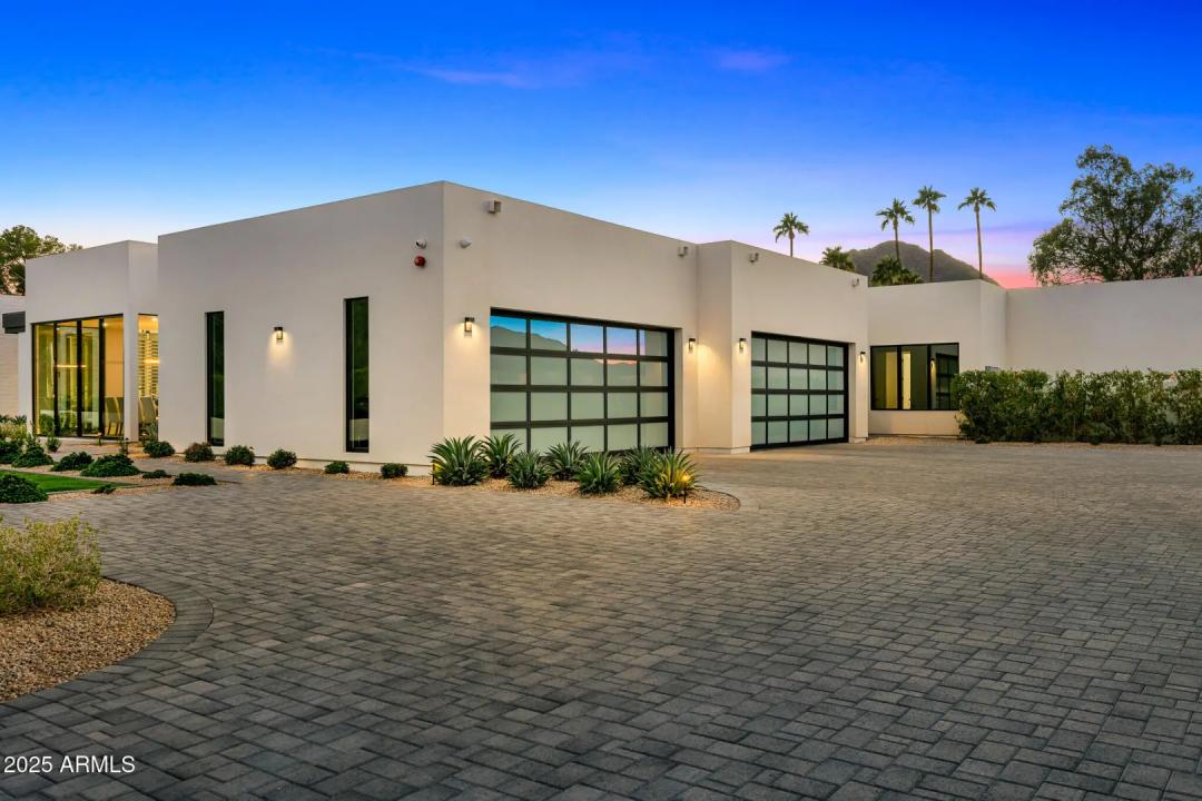 With its modern architecture, striking curb appeal, and sweeping Camelback Mtn views, this gated home with full guest house is truly the one you've been waiting for. This private estate offers 5 bedrooms, 7 bathrooms, a 6+ car garage, dedicated office, and a home gym, all wrapped in chic design and serene living spaces. The primary retreat is an inviting sanctuary, featuring telescoping doors, a cozy fireplace, and a convenient coffee station. The luxurious primary bath includes an impressive walk-in closet with double islands, a washer and dryer, dual vanities with a makeup area, a soaking tub, a walk-in shower, and even a privately enclosed outdoor shower. The guest wing includes its own secondary family room, a theater with projection screen, and three en-suite guest bedrooms.