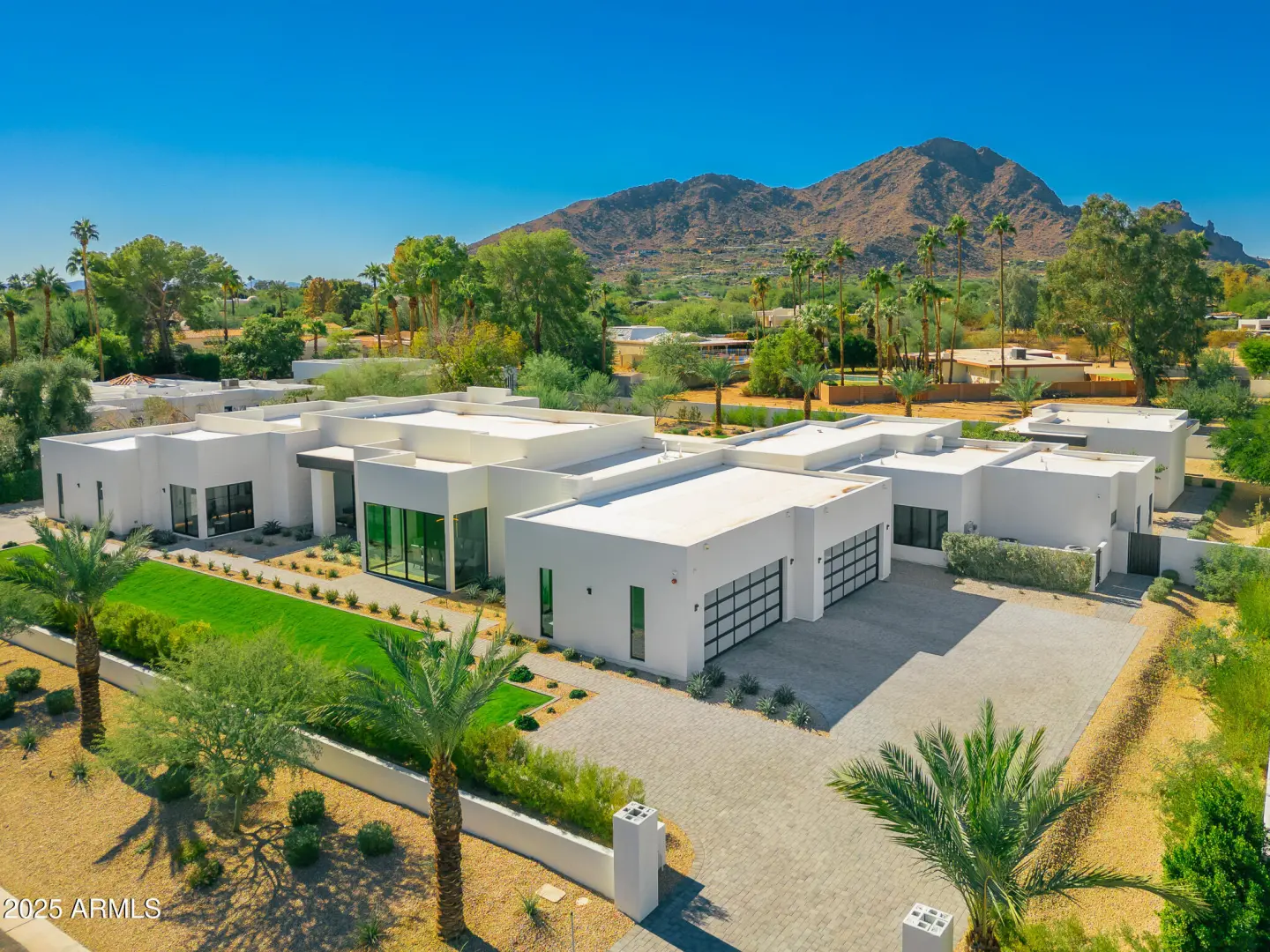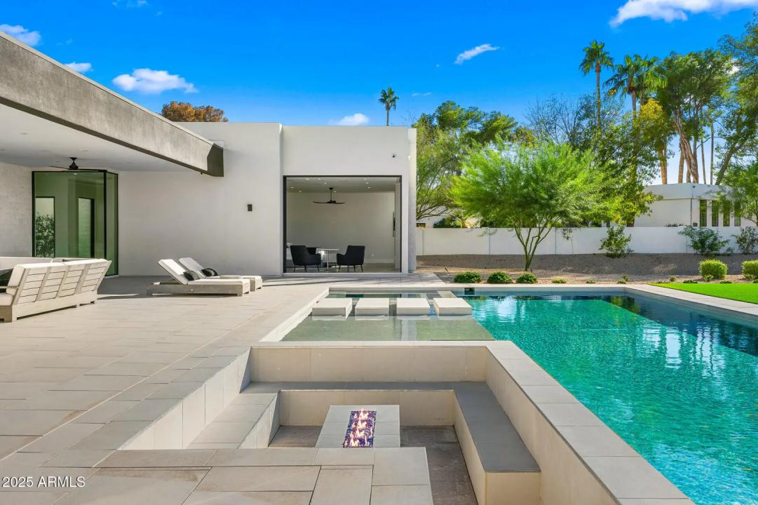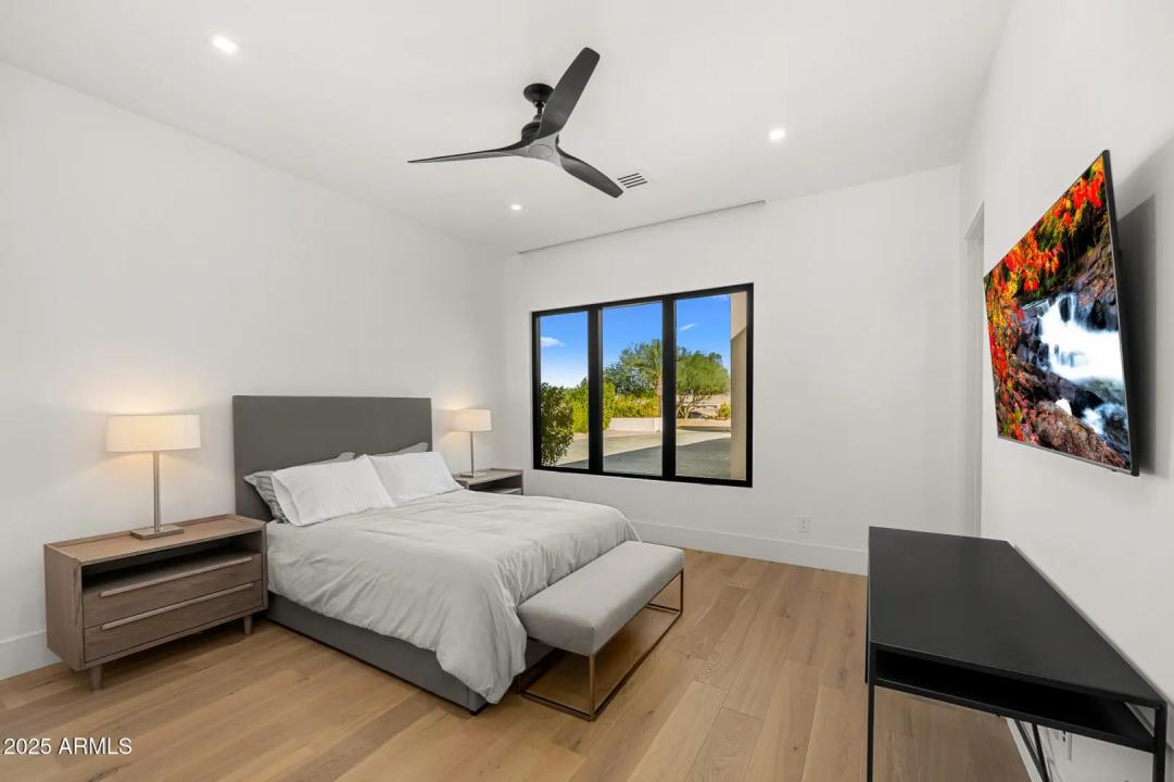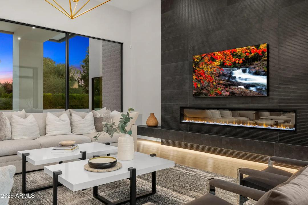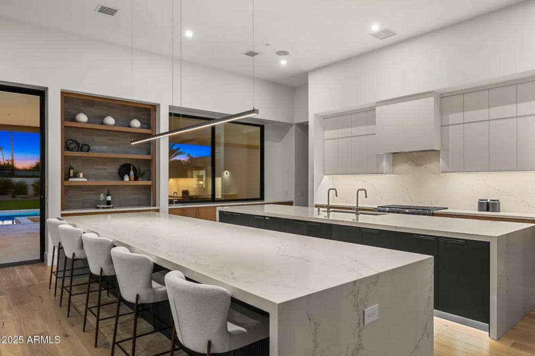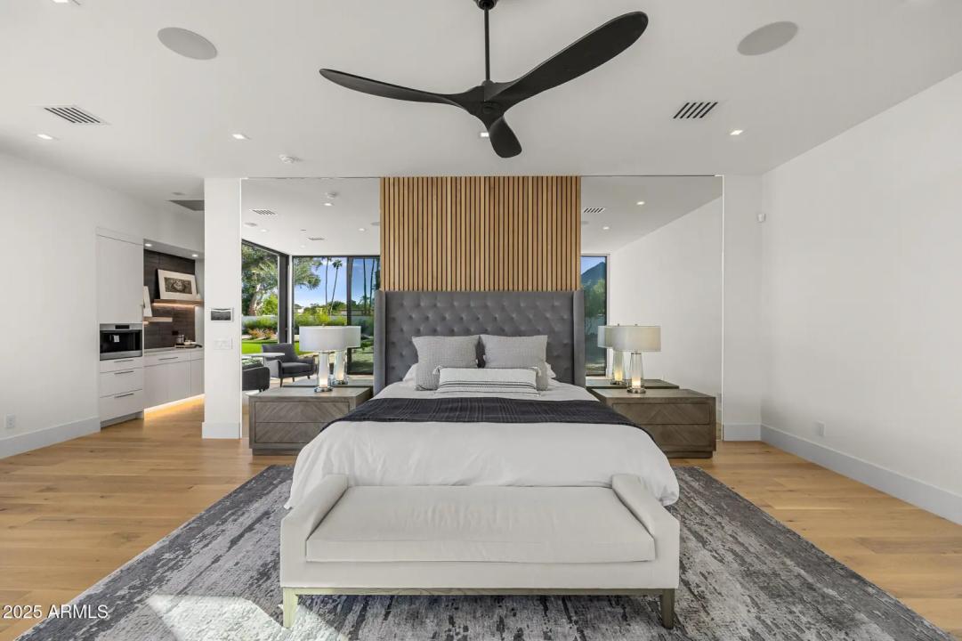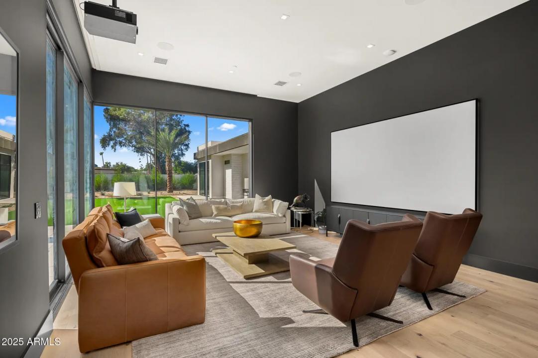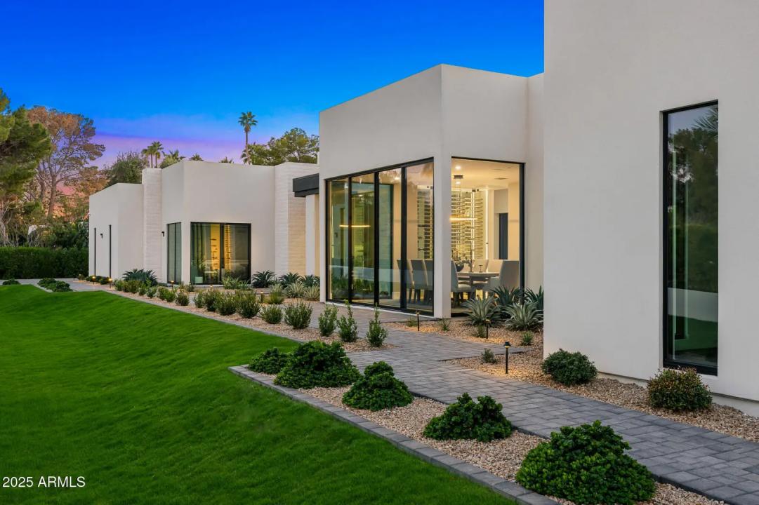 With its modern architecture, striking curb appeal, and sweeping Camelback Mtn views, this gated home with full guest house is truly the one you've been waiting for. This private estate offers 5 bedrooms, 7 bathrooms, a 6+ car garage, dedicated office, and a home gym, all wrapped in chic design and serene living spaces. The primary retreat is an inviting sanctuary, featuring telescoping doors, a cozy fireplace, and a convenient coffee station. The luxurious primary bath includes an impressive walk-in closet with double islands, a washer and dryer, dual vanities with a makeup area, a soaking tub, a walk-in shower, and even a privately enclosed outdoor shower. The guest wing includes its own secondary family room, a theater with projection screen, and three en-suite guest bedrooms.