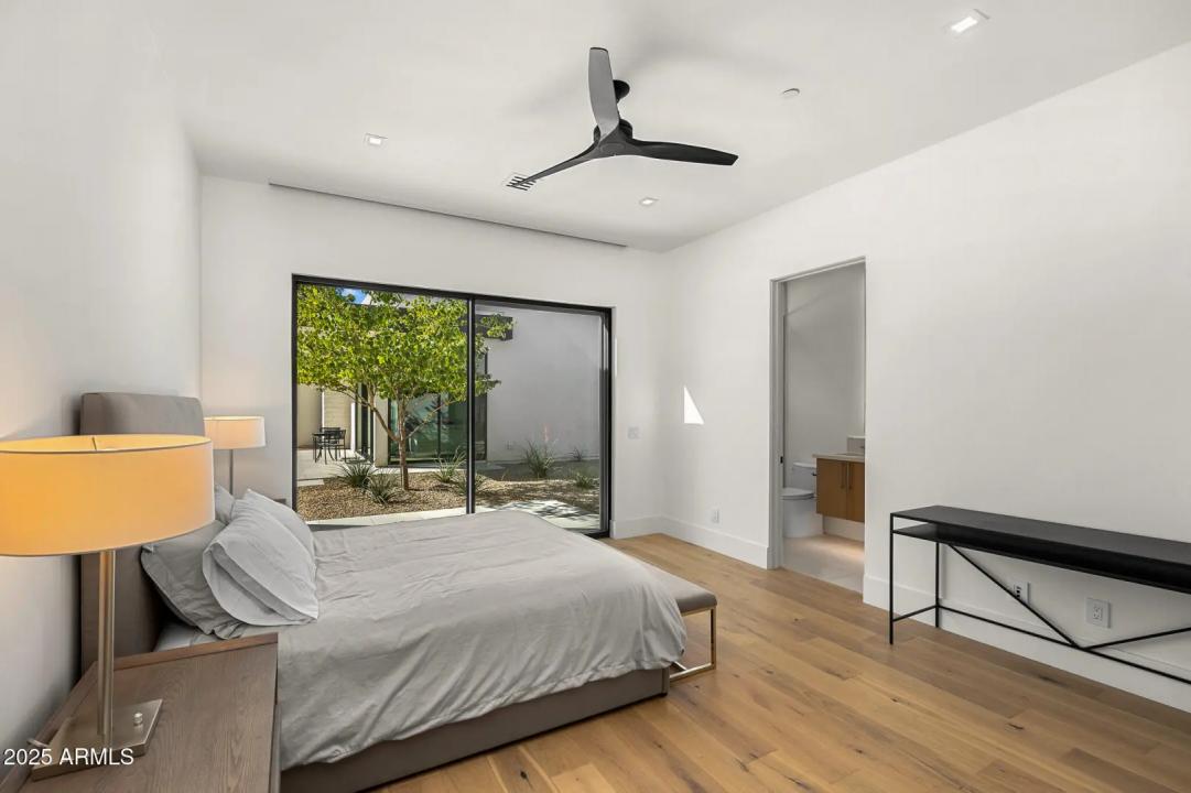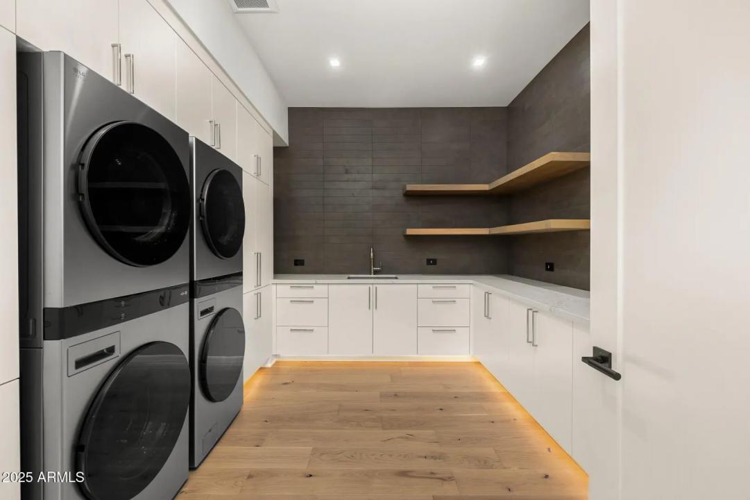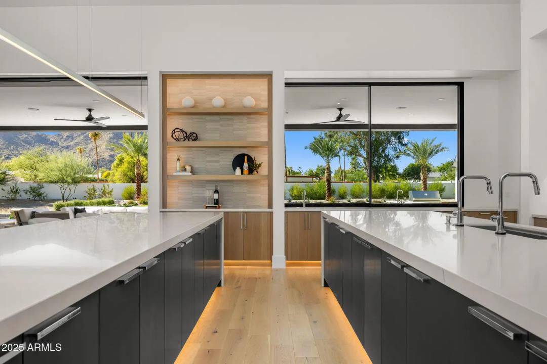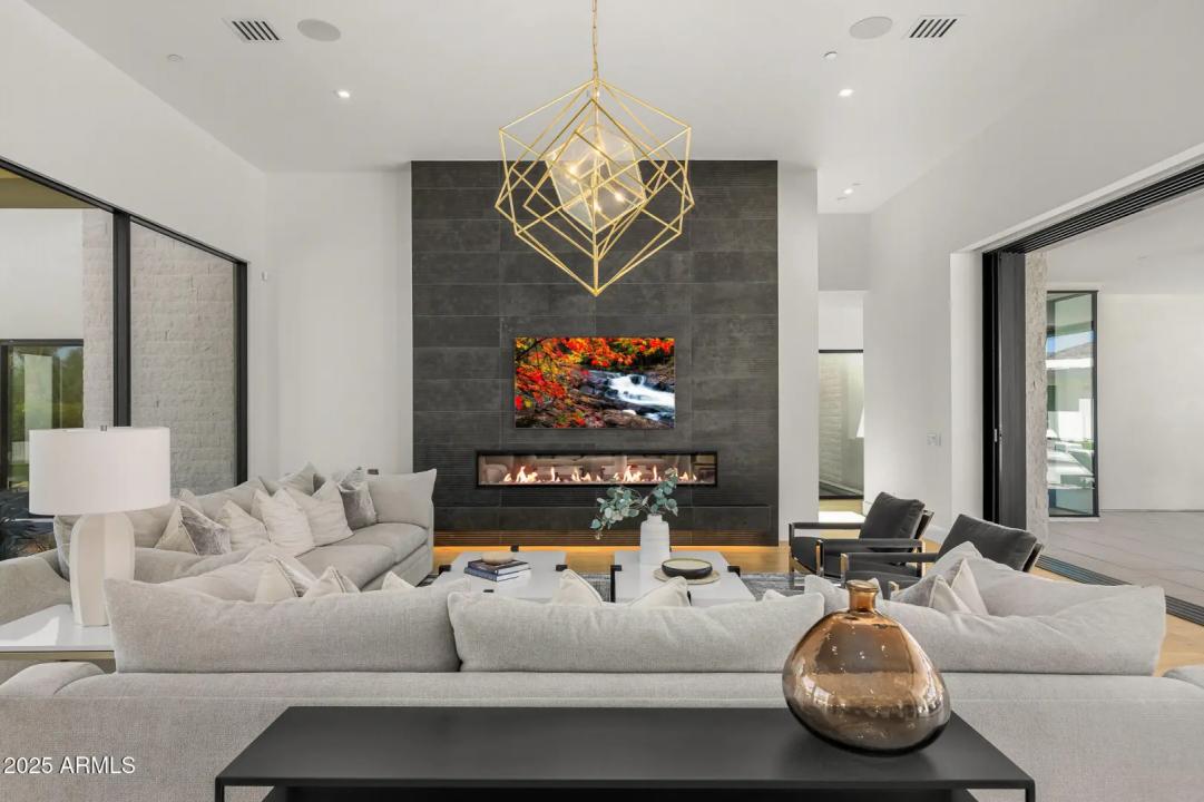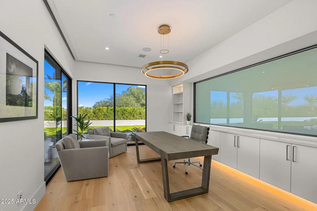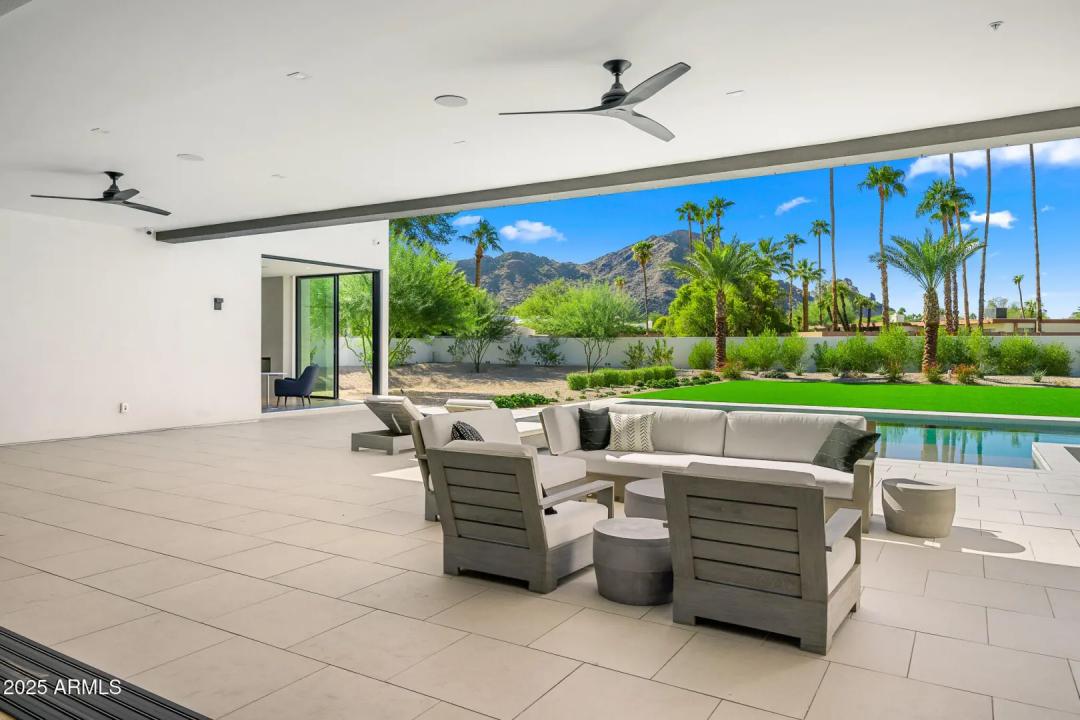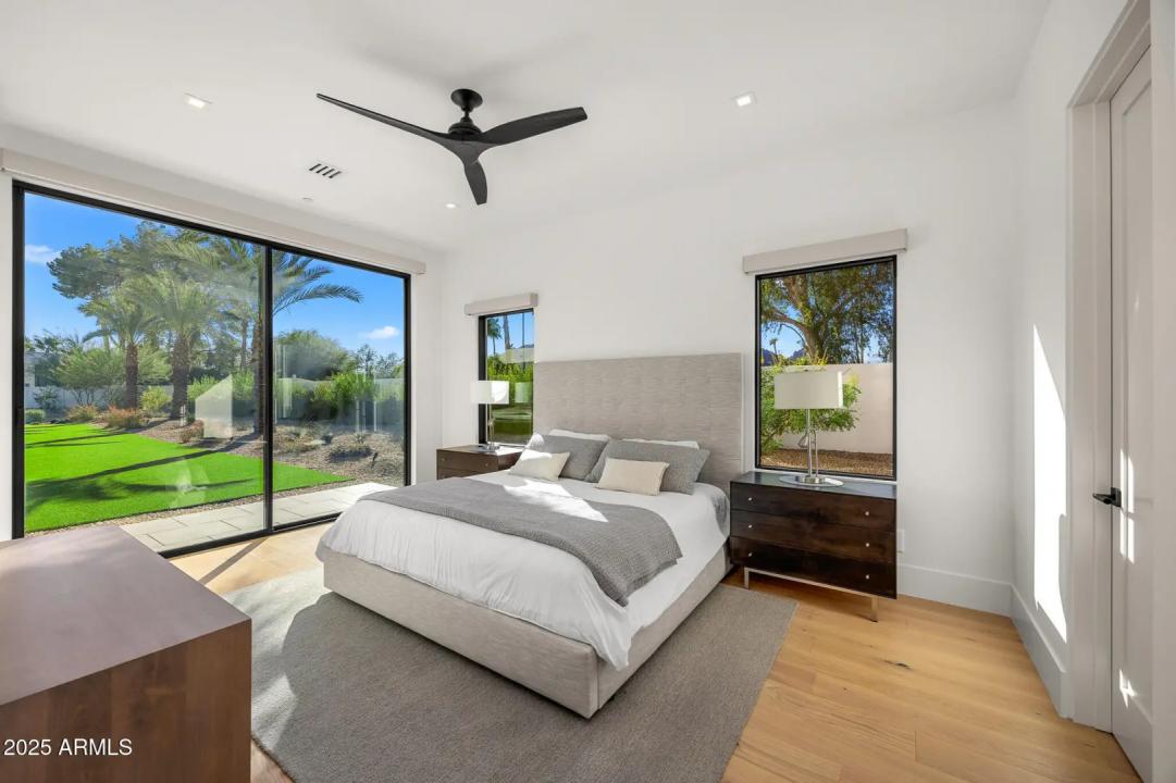 With its modern architecture, striking curb appeal, and sweeping Camelback Mtn views, this gated home with full guest house is truly the one you've been waiting for. This private estate offers 5 bedrooms, 7 bathrooms, a 6+ car garage, dedicated office, and a home gym, all wrapped in chic design and serene living spaces. The primary retreat is an inviting sanctuary, featuring telescoping doors, a cozy fireplace, and a convenient coffee station. The luxurious primary bath includes an impressive walk-in closet with double islands, a washer and dryer, dual vanities with a makeup area, a soaking tub, a walk-in shower, and even a privately enclosed outdoor shower. The guest wing includes its own secondary family room, a theater with projection screen, and three en-suite guest bedrooms.