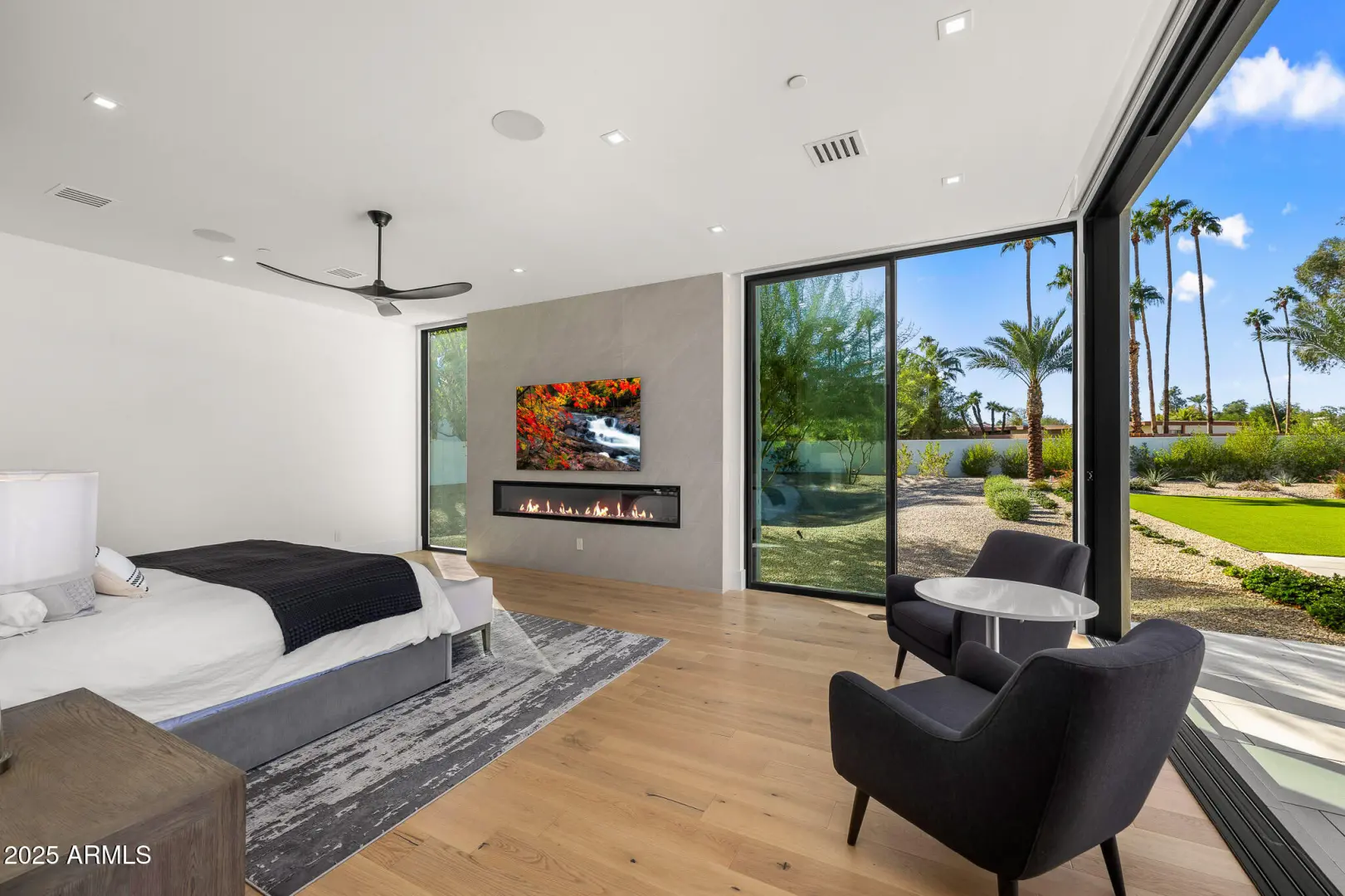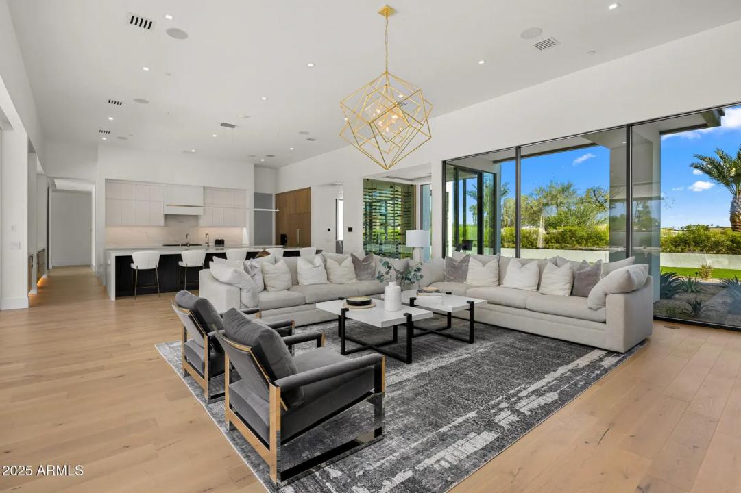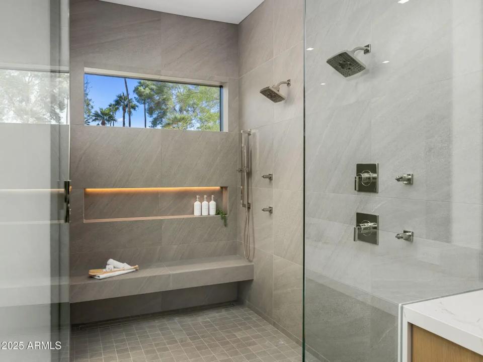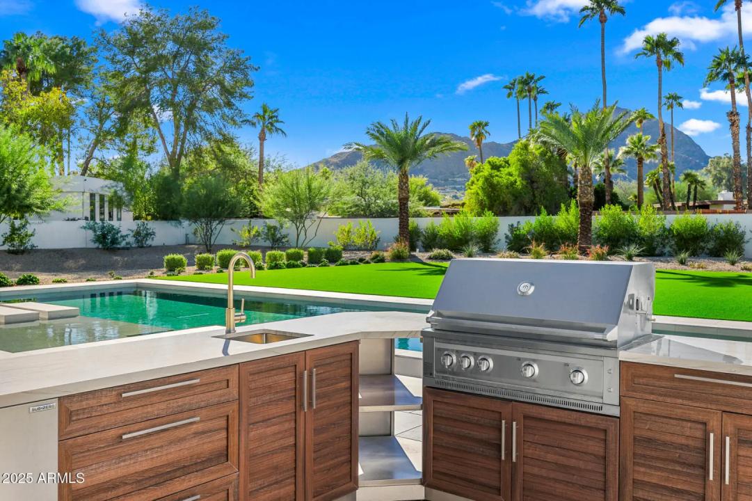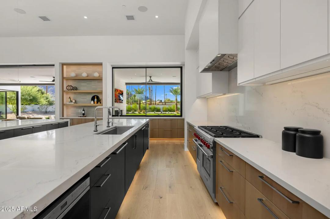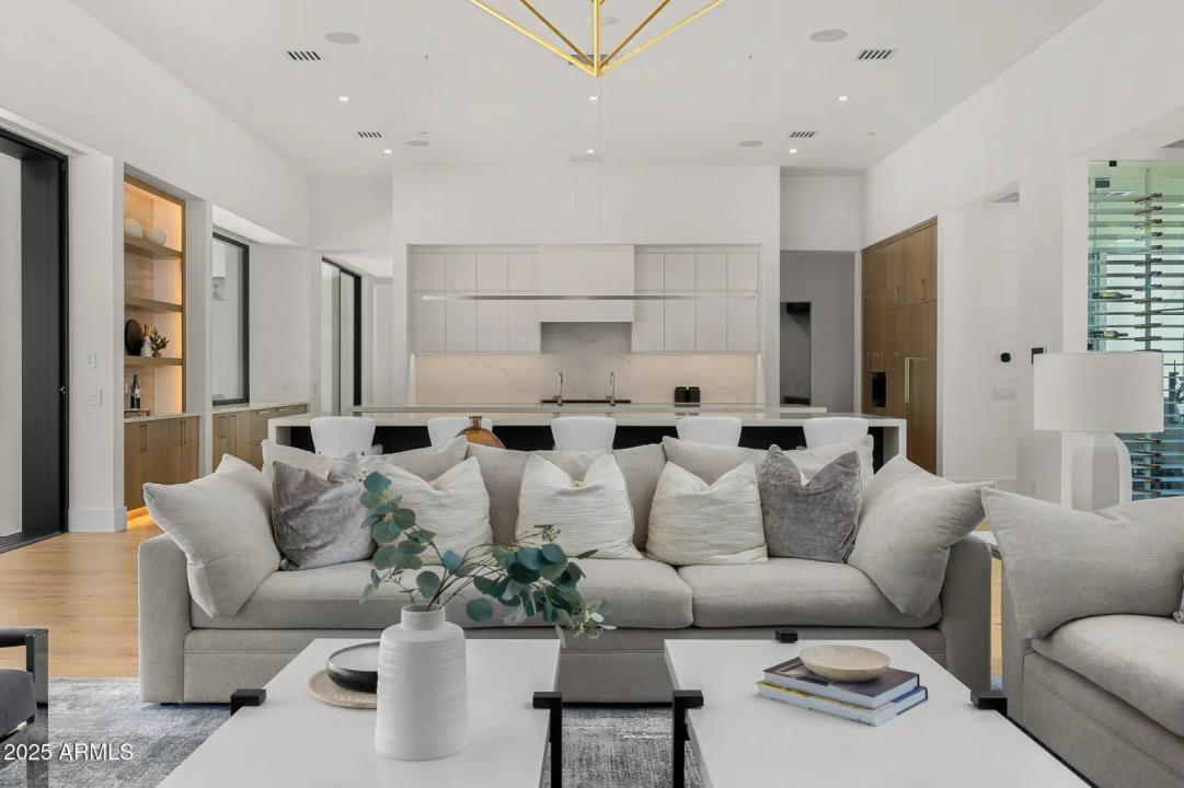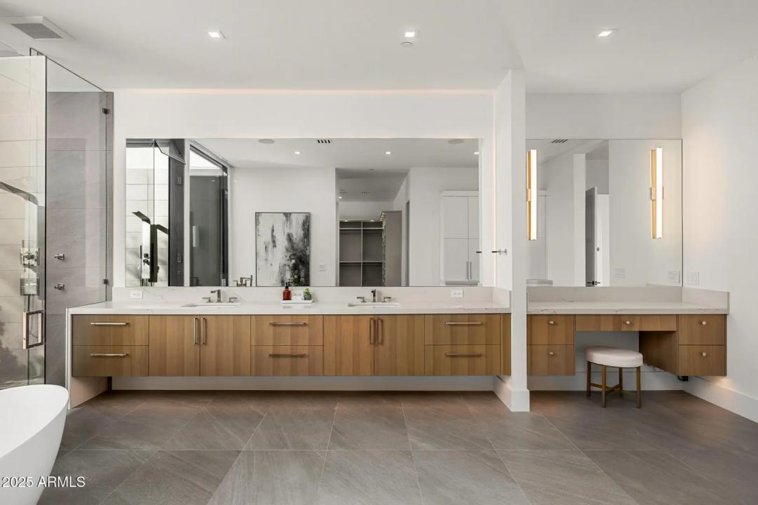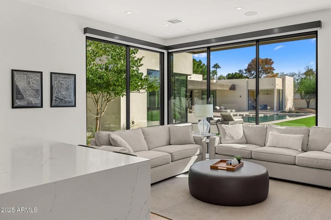 With its modern architecture, striking curb appeal, and sweeping Camelback Mtn views, this gated home with full guest house is truly the one you've been waiting for. This private estate offers 5 bedrooms, 7 bathrooms, a 6+ car garage, dedicated office, and a home gym, all wrapped in chic design and serene living spaces. The primary retreat is an inviting sanctuary, featuring telescoping doors, a cozy fireplace, and a convenient coffee station. The luxurious primary bath includes an impressive walk-in closet with double islands, a washer and dryer, dual vanities with a makeup area, a soaking tub, a walk-in shower, and even a privately enclosed outdoor shower. The guest wing includes its own secondary family room, a theater with projection screen, and three en-suite guest bedrooms.