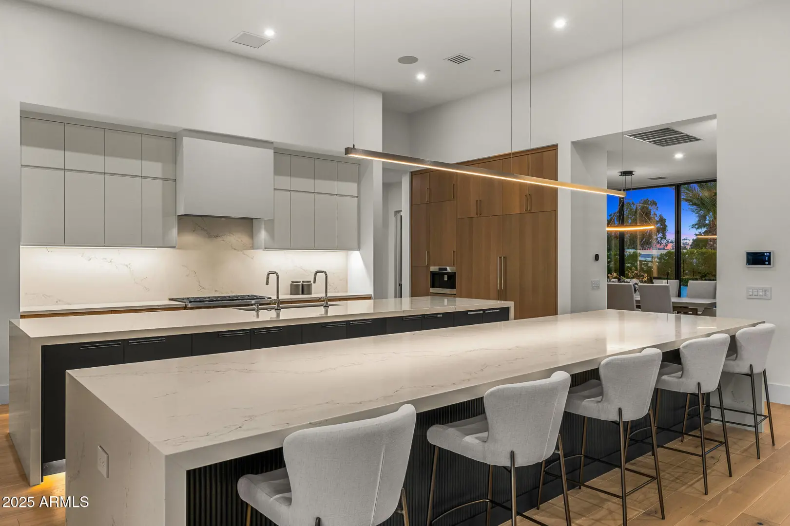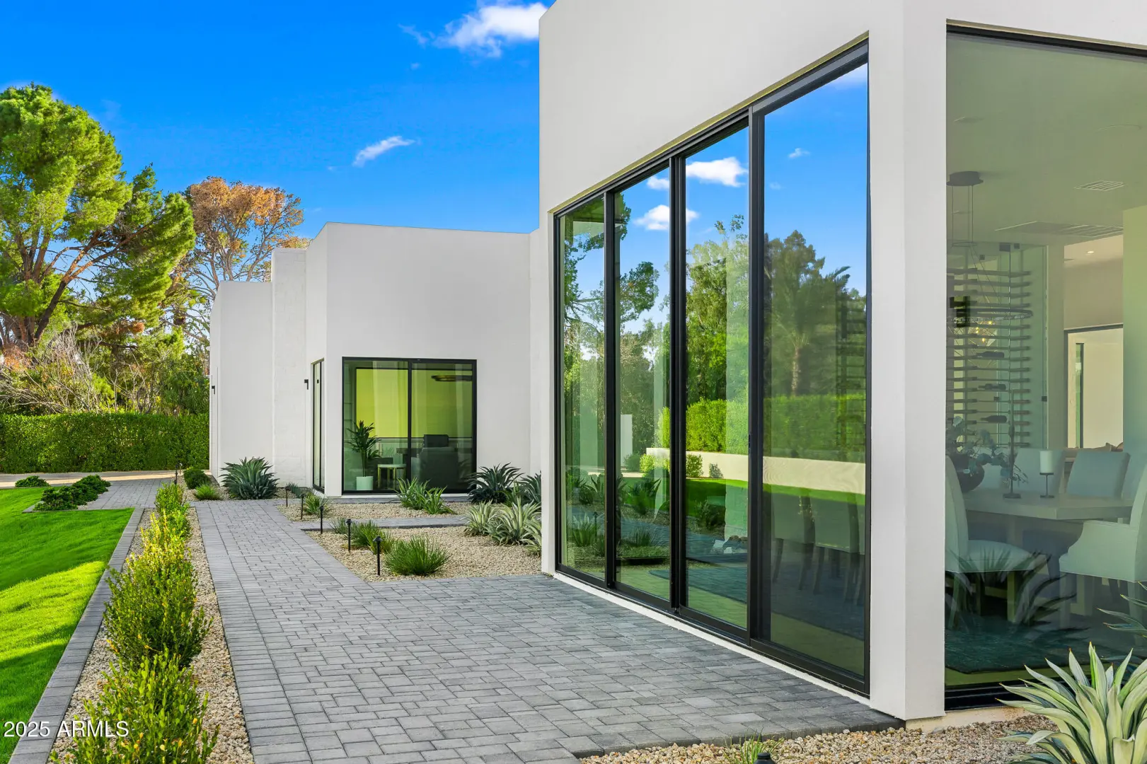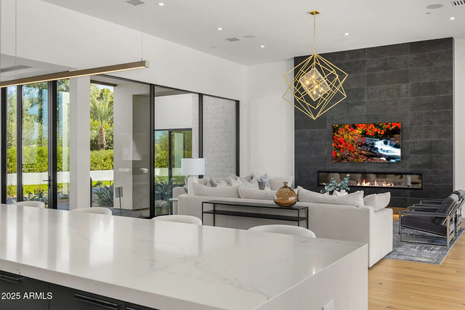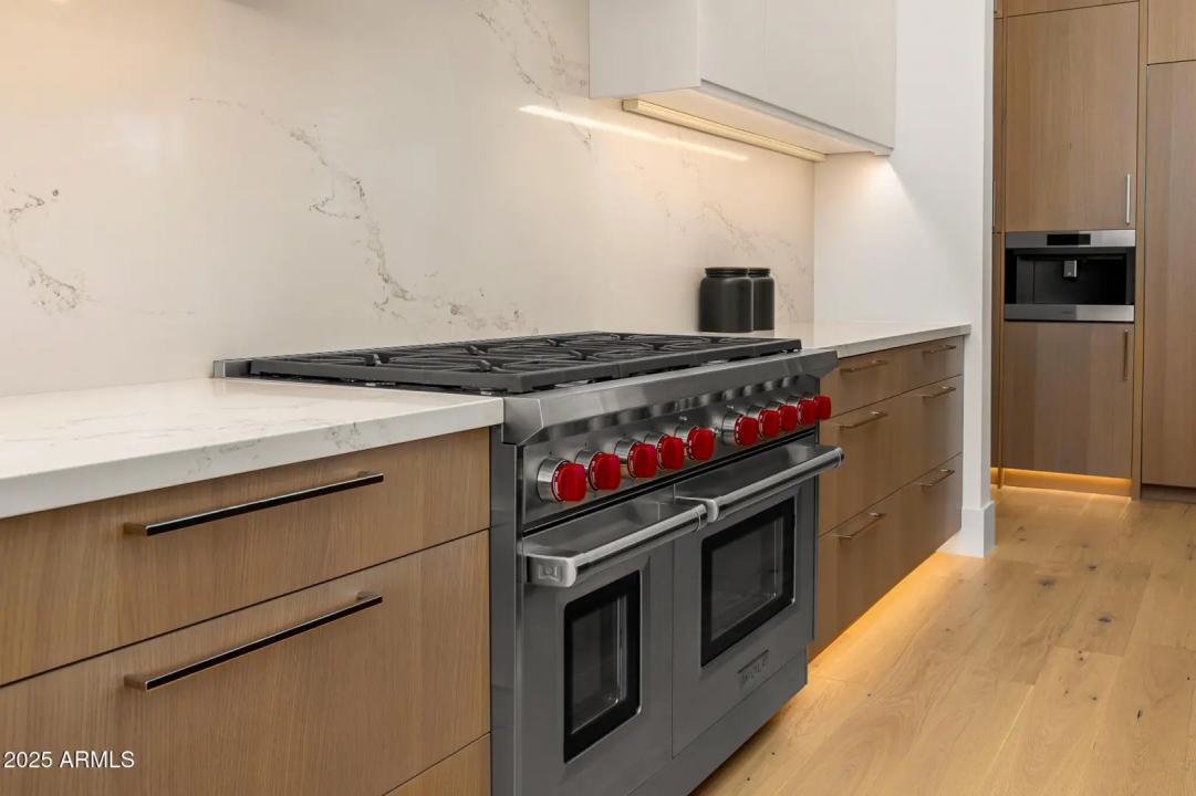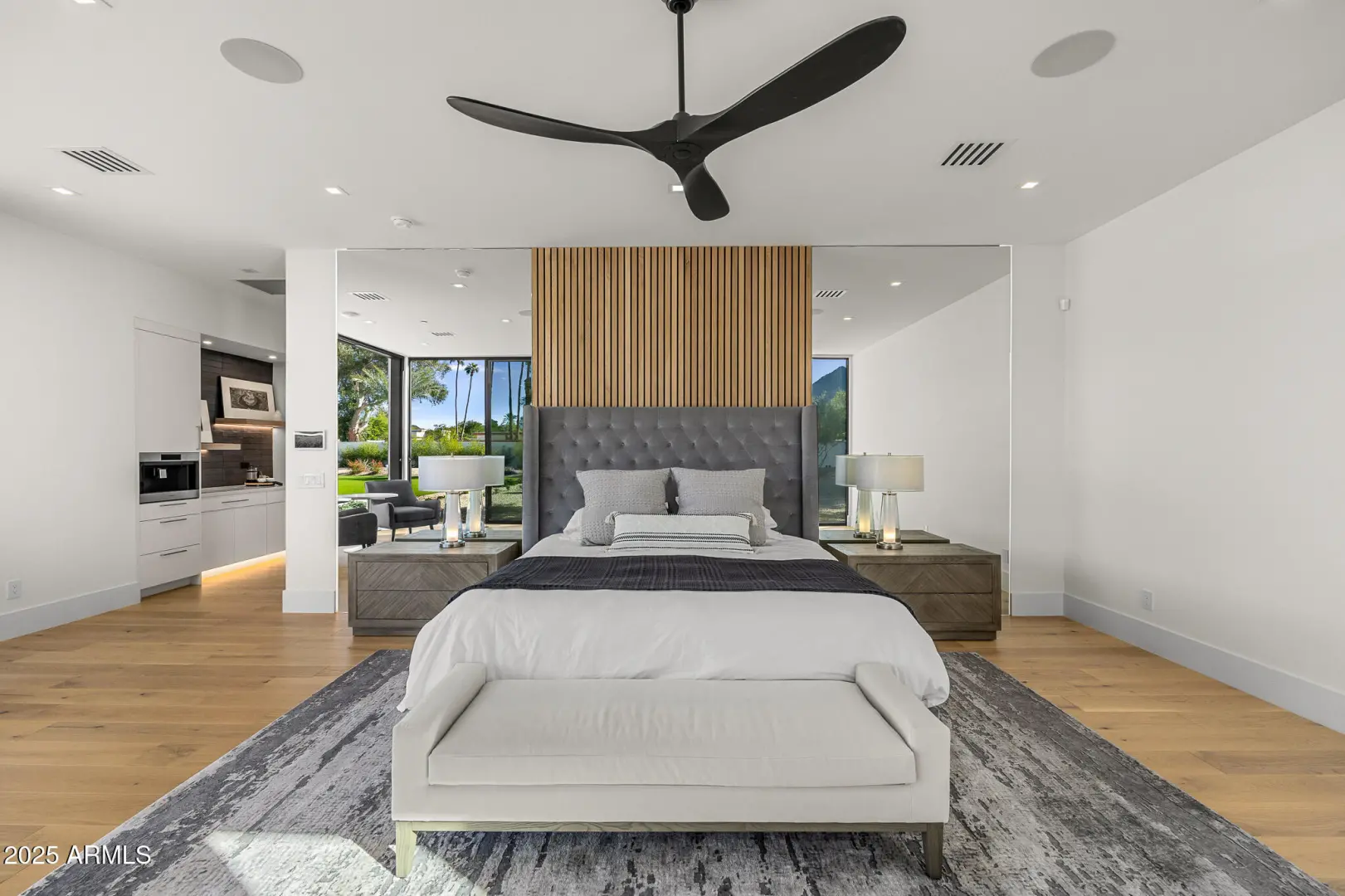 With its modern architecture, striking curb appeal, and sweeping Camelback Mtn views, this gated home with full guest house is truly the one you've been waiting for. This private estate offers 5 bedrooms, 7 bathrooms, a 6+ car garage, dedicated office, and a home gym, all wrapped in chic design and serene living spaces. The primary retreat is an inviting sanctuary, featuring telescoping doors, a cozy fireplace, and a convenient coffee station. The luxurious primary bath includes an impressive walk-in closet with double islands, a washer and dryer, dual vanities with a makeup area, a soaking tub, a walk-in shower, and even a privately enclosed outdoor shower. The guest wing includes its own secondary family room, a theater with projection screen, and three en-suite guest bedrooms.