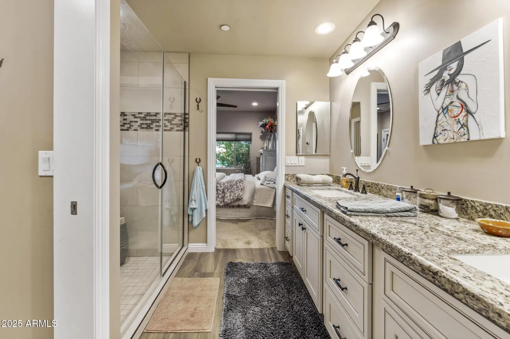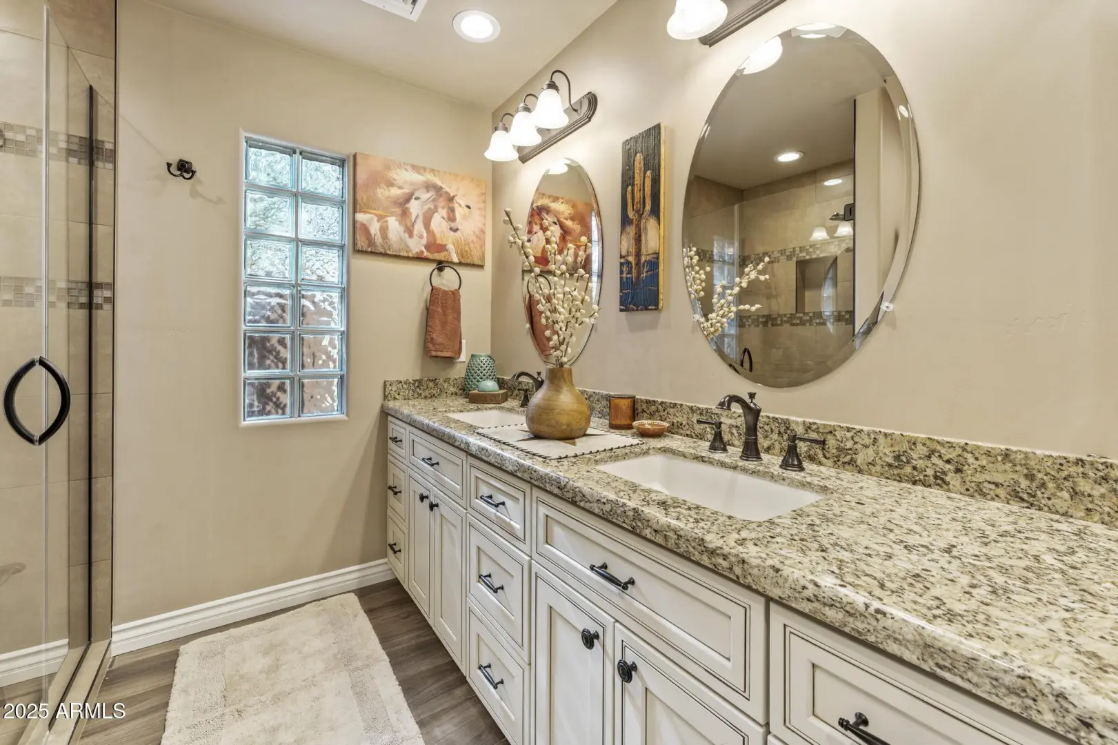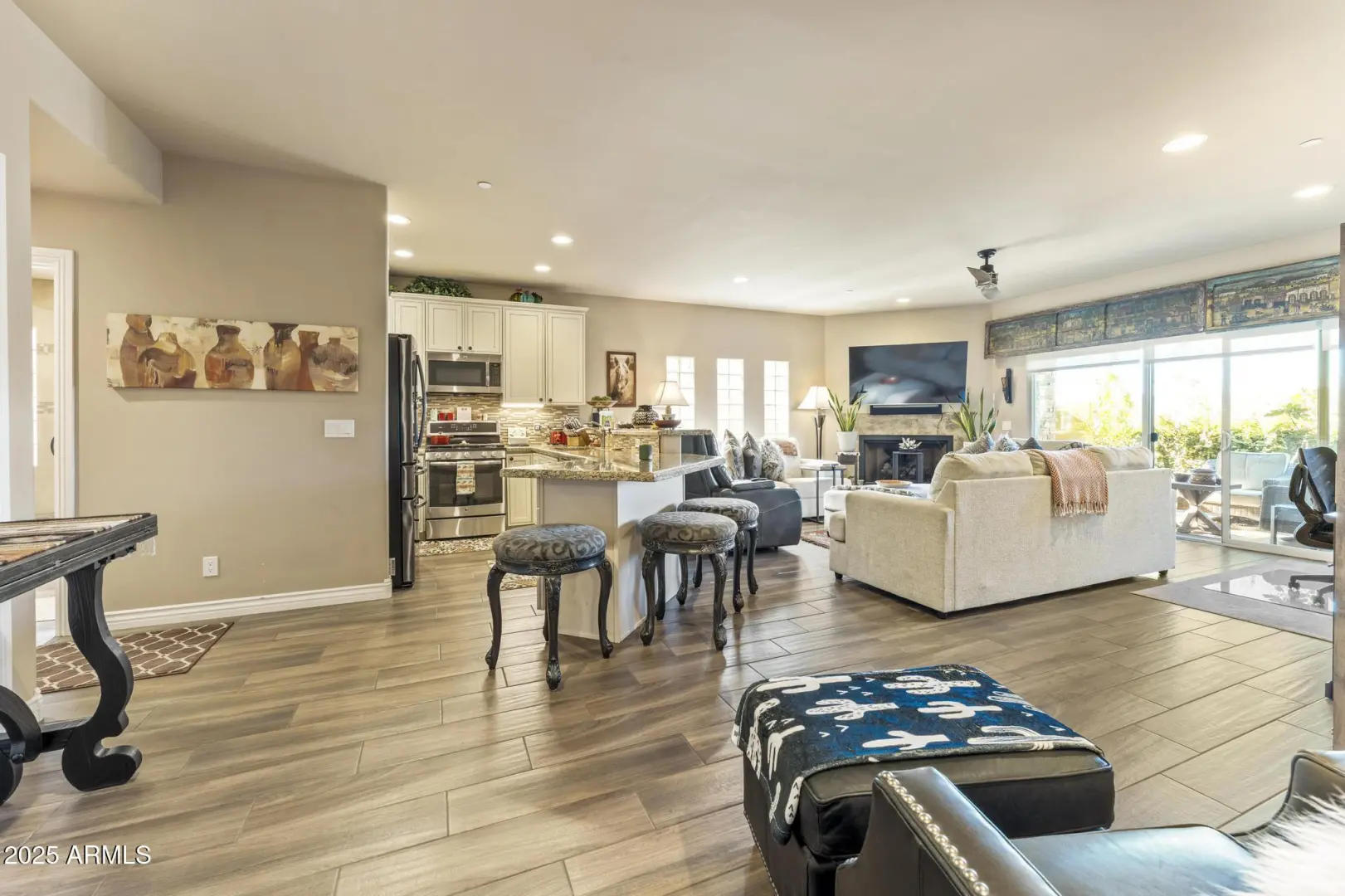 Welcome to modern desert living in the heart of Cave Creek. Tucked within an exclusive enclave just steps from the town's best dining, shopping, and trail systems, this beautifully upgraded residence blends high-end finishes with effortless lock-and-leave convenience. Inside, you'll find soaring ceilings, gorgeous wood-plank tile flooring, ceiling fans throughout, and a cozy fireplace—perfect for those chilly Arizona evenings. Large windows frame breathtaking sunset and mountain views, bringing the beauty of Cave Creek right into your living space. The gourmet kitchen is both stylish and functional, featuring granite countertops, a breakfast bar, stainless steel appliances, a glass-tile backsplash, and abundant custom distressed cabinetry. The open-concept layout flows seamlessly into t
