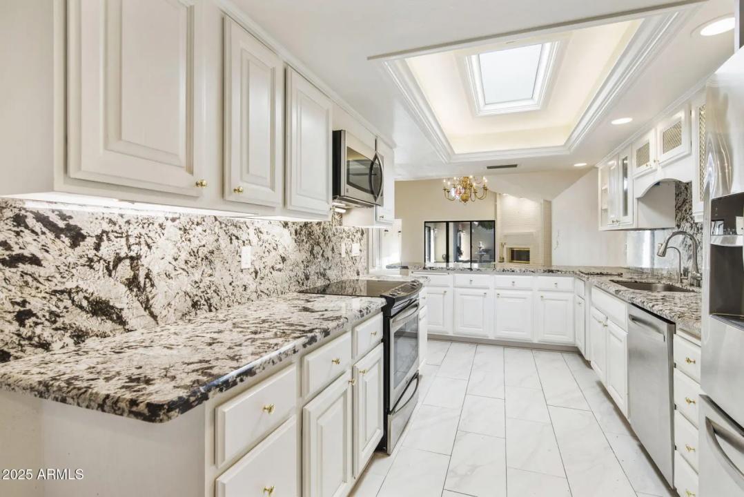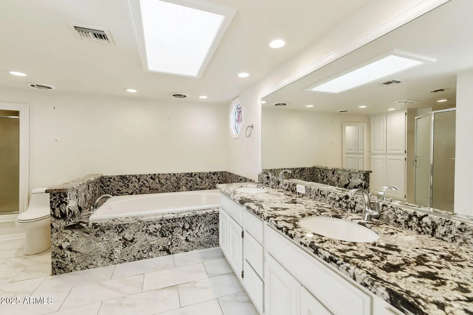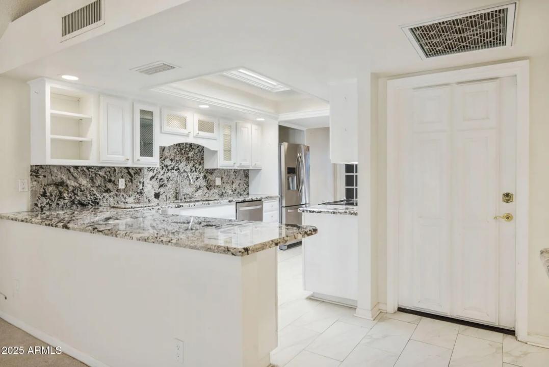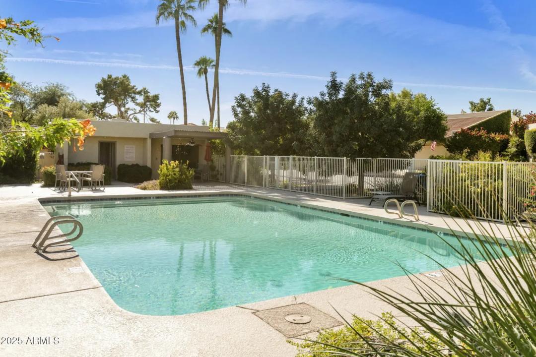The perfect Scottsdale Get Away situated in a quiet Central Scottsdale location. Walk to Hilton Village , Scottsdale Fashion Square and great restaurants.Home is very spacious with 2 bedrooms(ensuite) and a large study. There is an open great room with 15 ft high ceilings. Enjoy the gas fireplace, both inside and outside as well as a glass enclosed courtyard to bring light into the home and privacy for all. The 2 car garage also has a large loft area for extra storage. The kitchen has a very well placed nook for enjoying breakfast and access to a large outdoor patio. The community has a pool and barbecue. Villa de Bonita has always been a coveted location. Come see for yourself what a special home this could be .