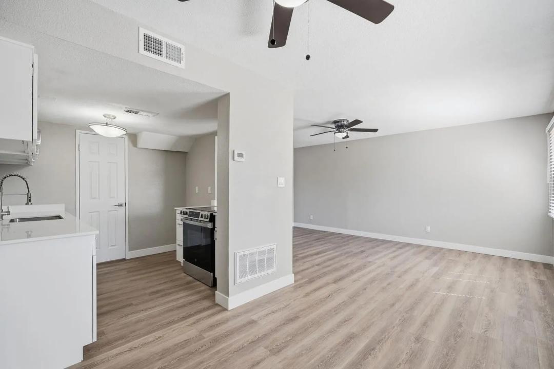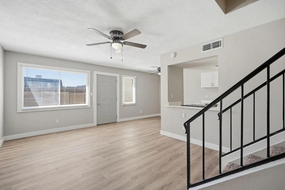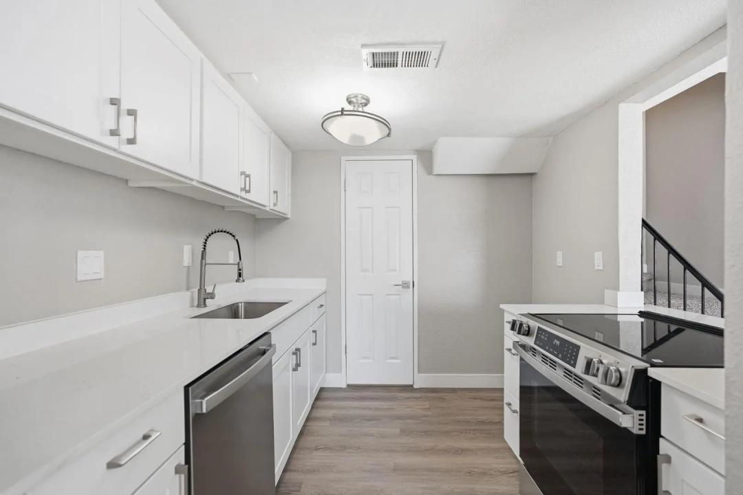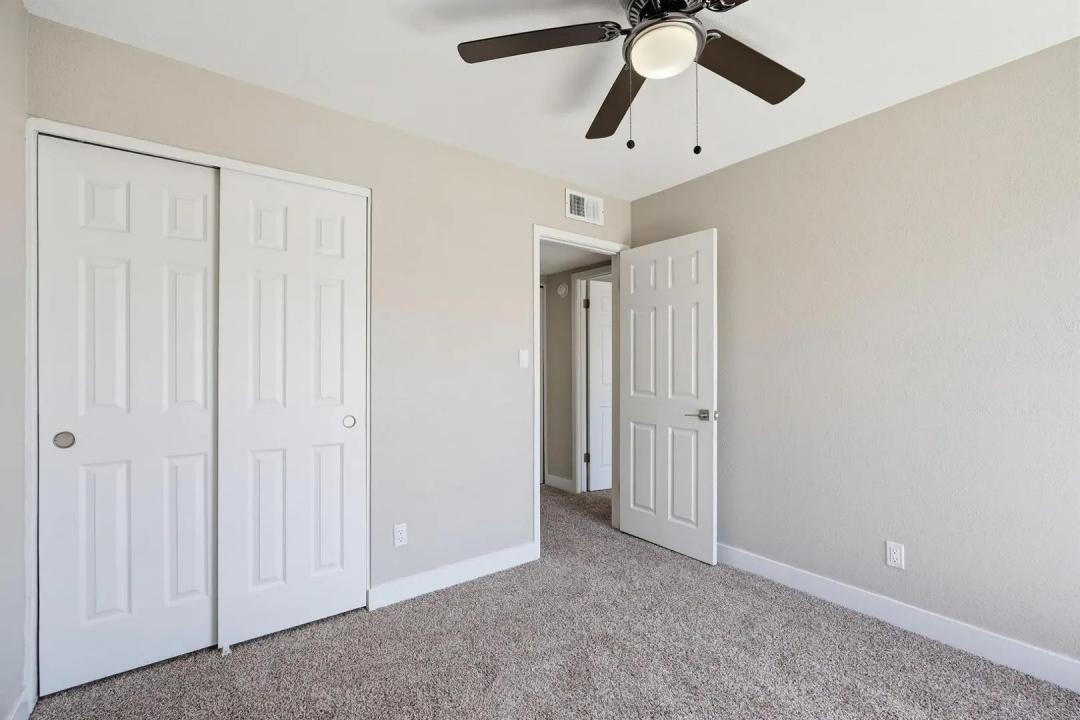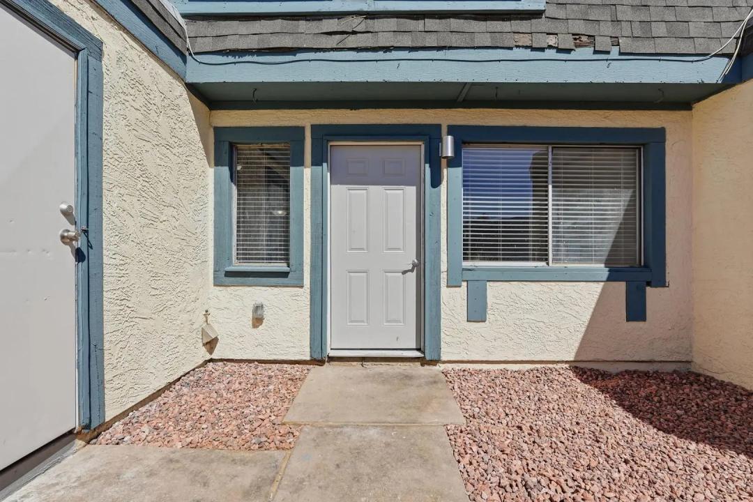 NEWLY REMODELED 2 bed/1 bath townhome! New Kitchen with quartz counters, stainless steel appliances, and walk-in pantry & storage. New refrigerator, washer, and dryer included. Primary Bedroom has nice size walk-in closet. Private fenced courtyard with large sized storage/laundry room. Park in front of your townhouse! Steps away from large crystal blue community pool and 1 unit over to large grassy play area. Close to GCU, soon to be redeveloped Metro Center, and easy access to freeways.