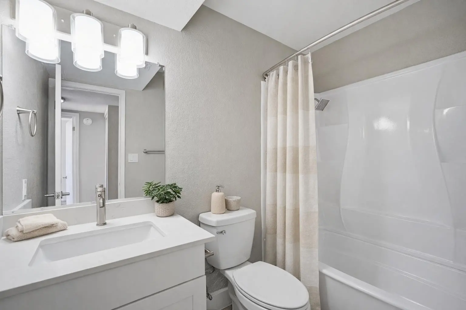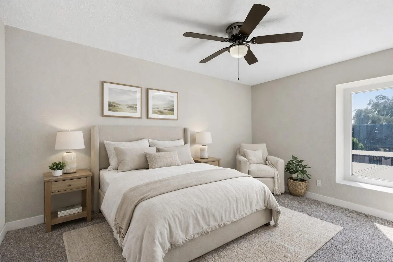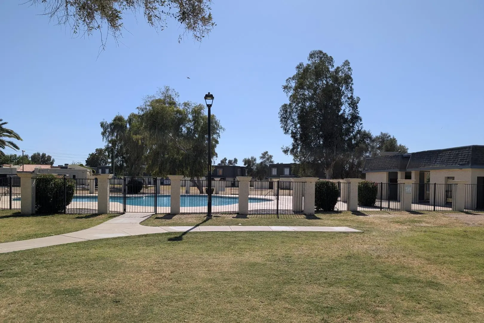 NEWLY REMODELED 2 bed/1 bath townhome! New Kitchen with quartz counters, stainless steel appliances, and walk-in pantry & storage. New refrigerator, washer, and dryer included. Primary Bedroom has nice size walk-in closet. Private fenced courtyard with large sized storage/laundry room. Park in front of your townhouse! Steps away from large crystal blue community pool and 1 unit over to large grassy play area. Close to GCU, soon to be redeveloped Metro Center, and easy access to freeways.